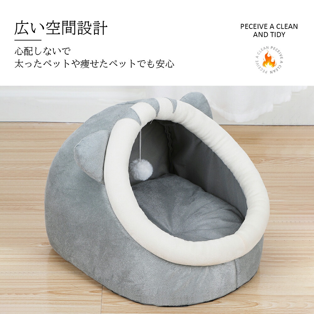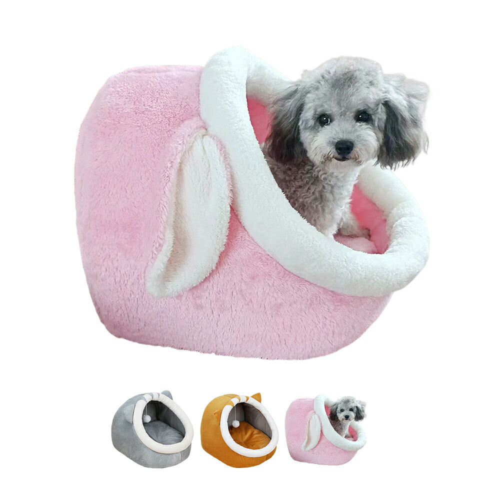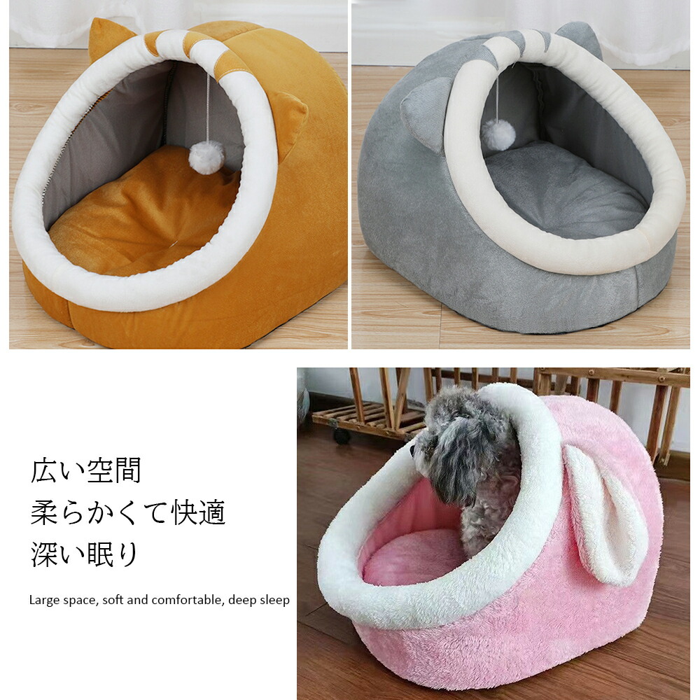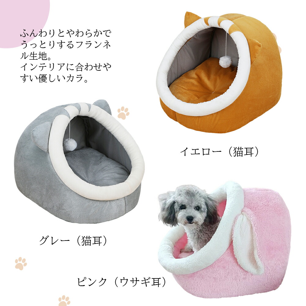 ペットベッド 冬 ふわふわ ドーム型 グレー(猫耳) イエロー(猫耳) ピンク(ウサギ耳)