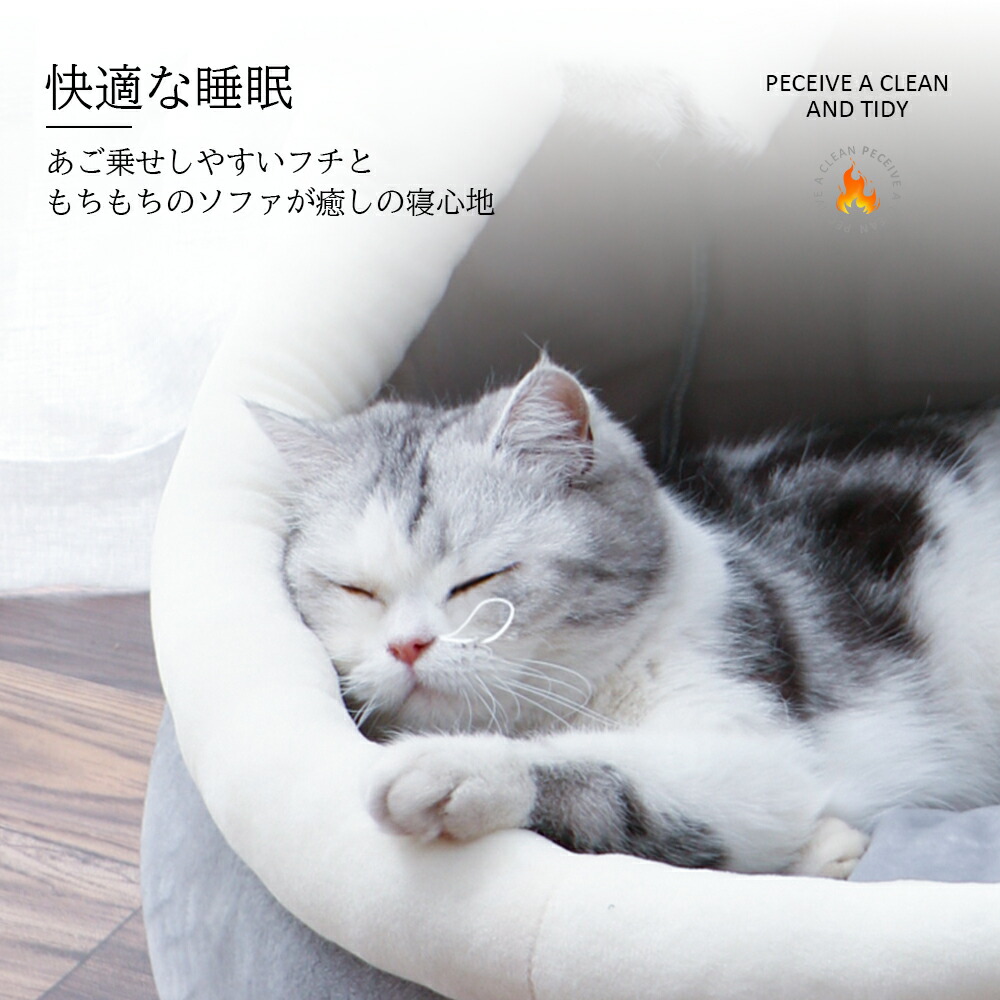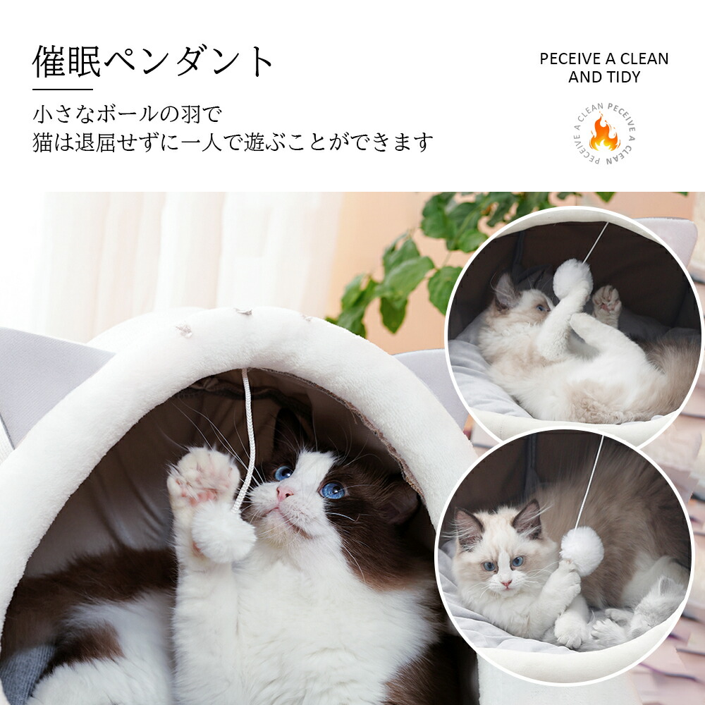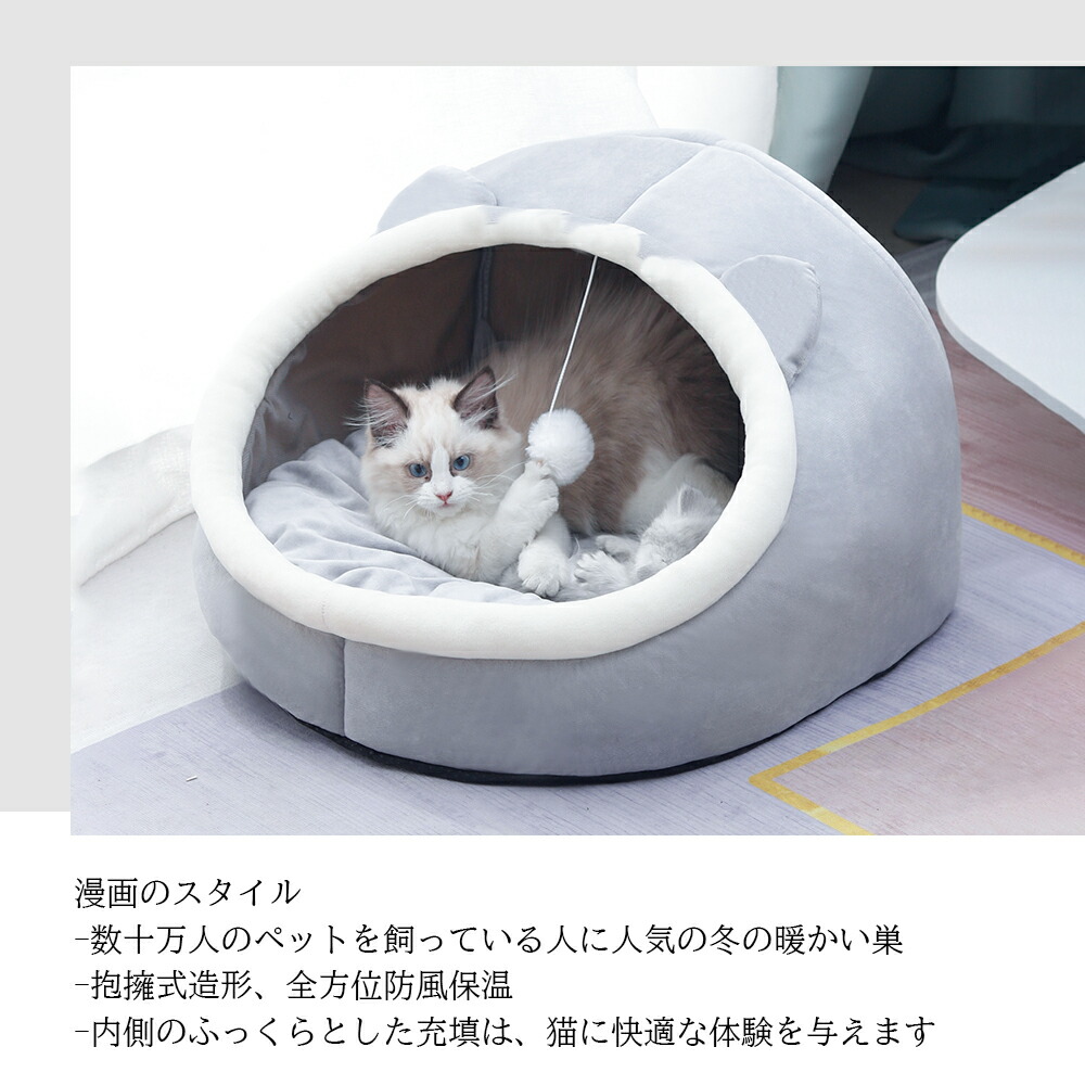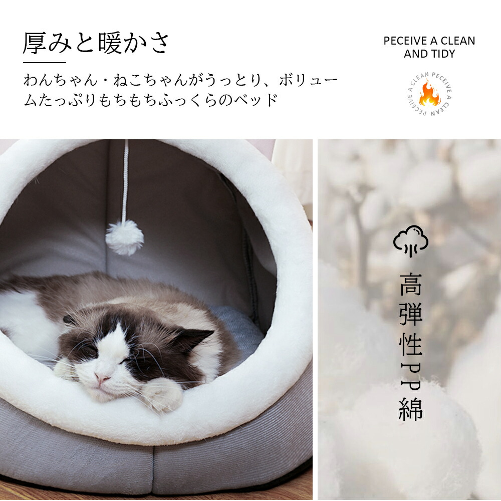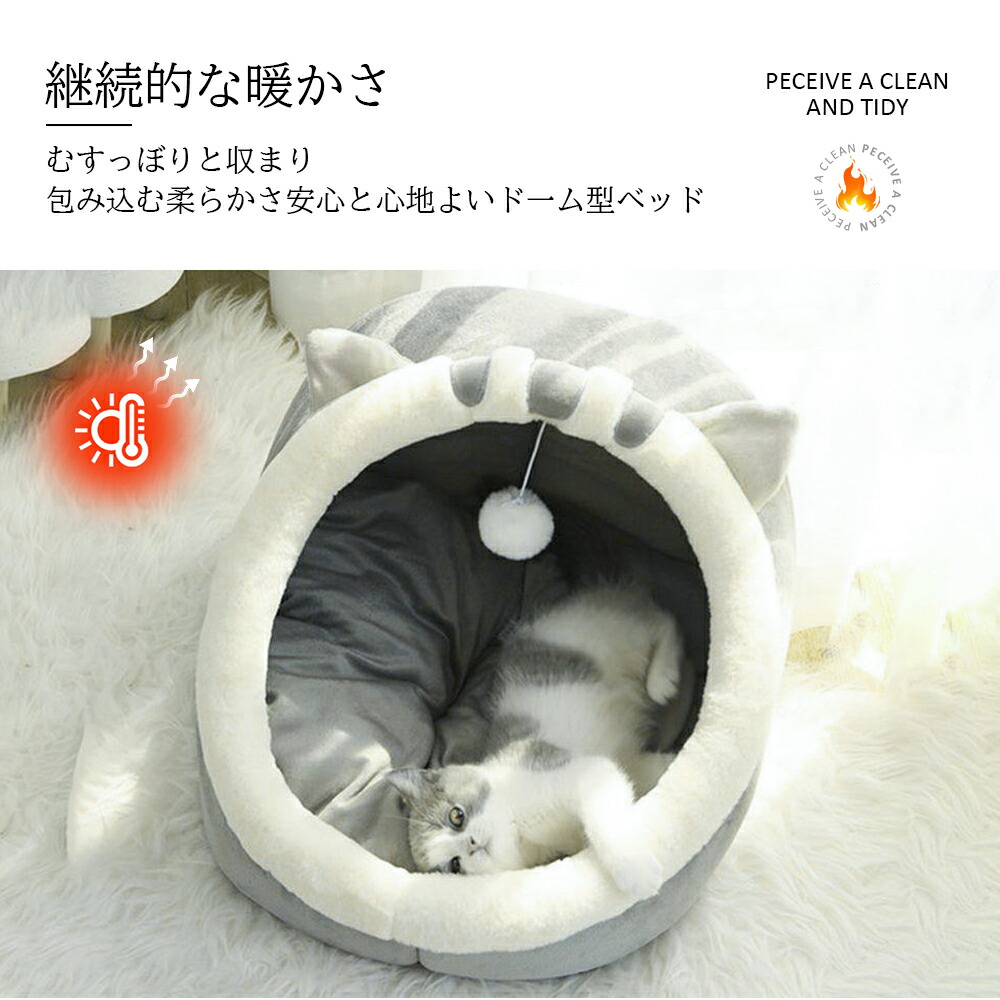 ペットベッド 冬 ふわふわ ドーム型 グレー(猫耳) イエロー(猫耳) ピンク(ウサギ耳)