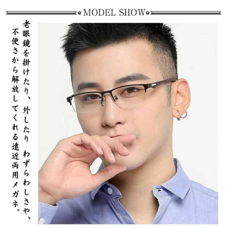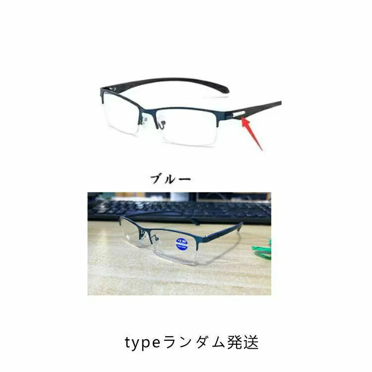 遠近両用メガネ 老眼鏡 メンズ レディース リーディンググラス シニアグラス 累進多焦点レンズ 眼鏡 変色メガネ 軽量ブルー おしゃれ