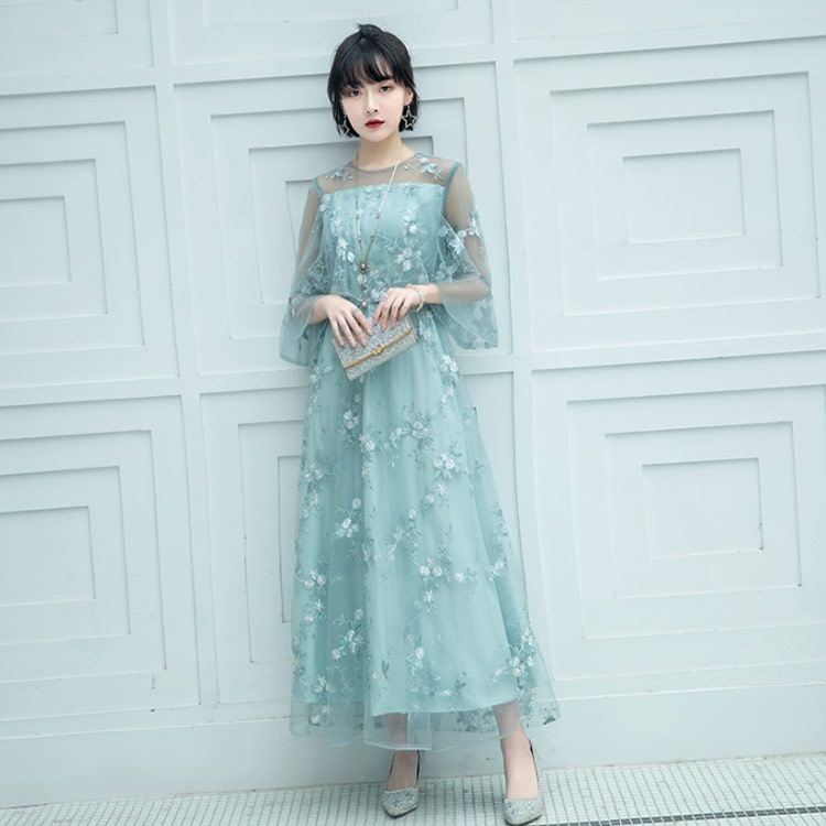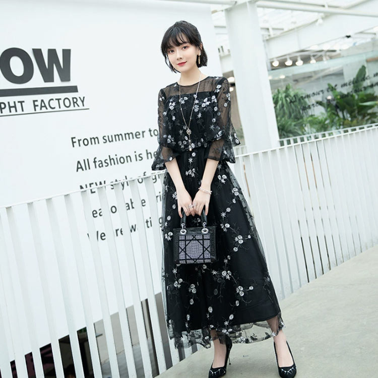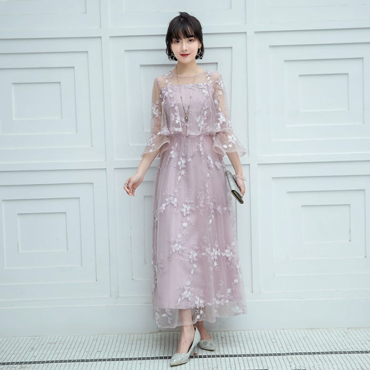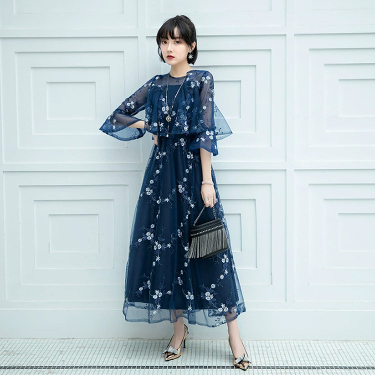 ロングワンピース 花柄 刺繡 紺 成人 ドレス 続々登場 ベージュ グレー ブラック ネイビー ブルー ピンク XS S M L XL 2XL 3XL