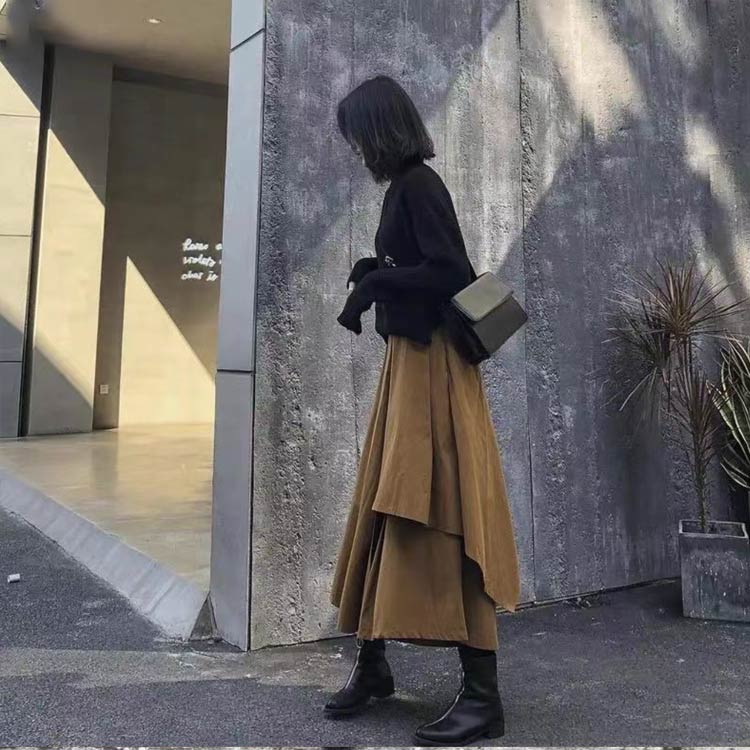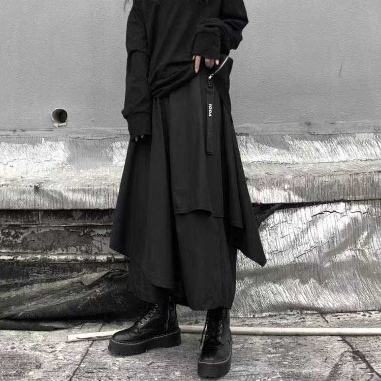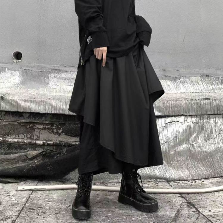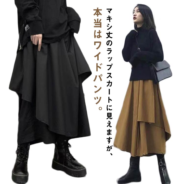 パンツ アシンメトリー 9分丈 バギー ボトムス スカート 人気 ブラック ブラウン M L XL 2XL 3XL