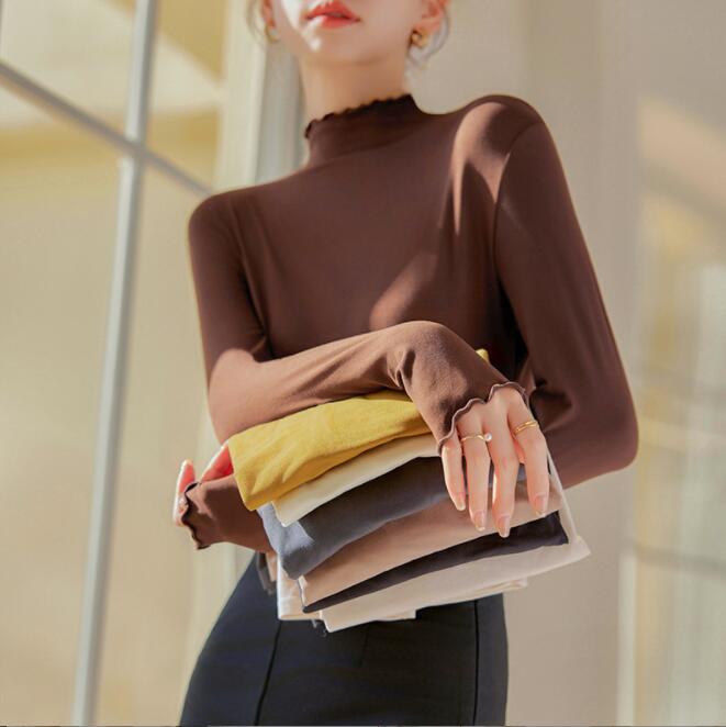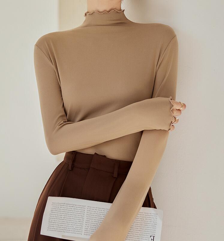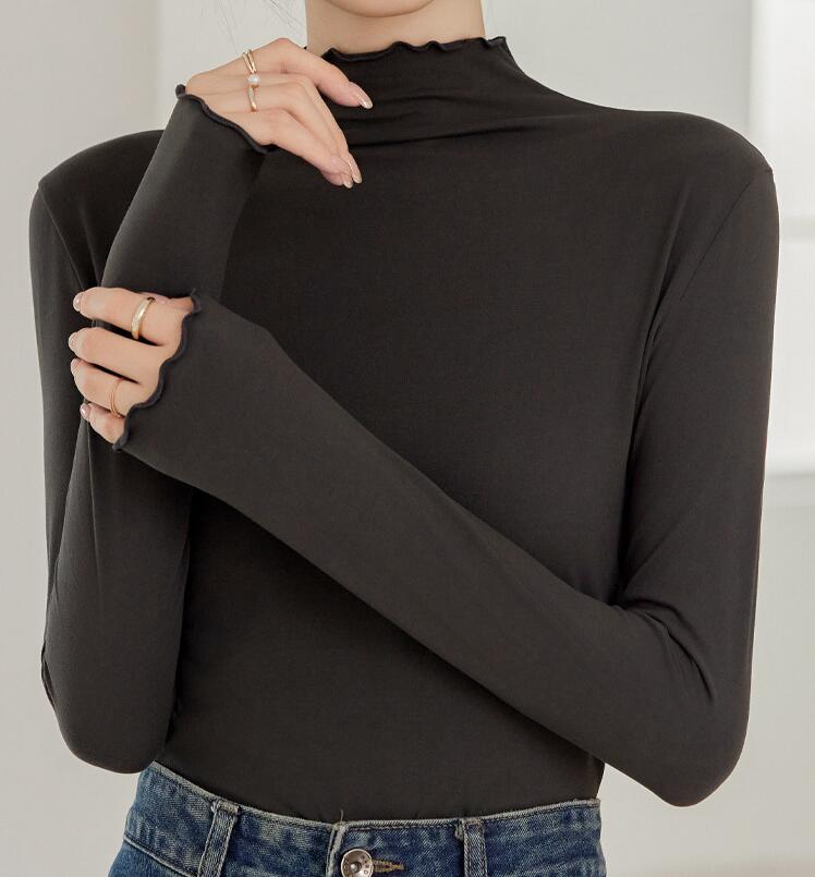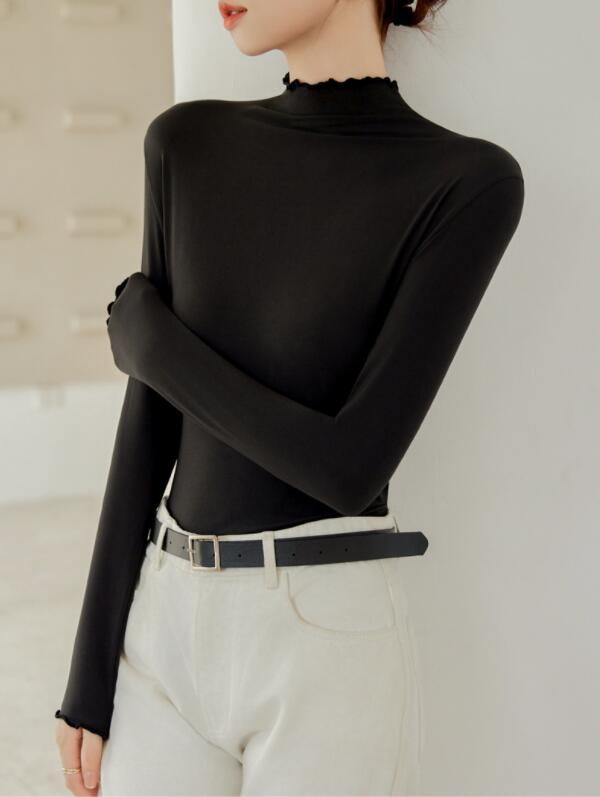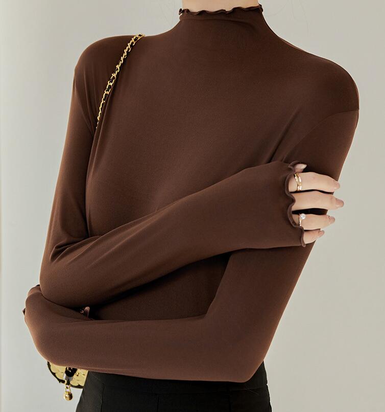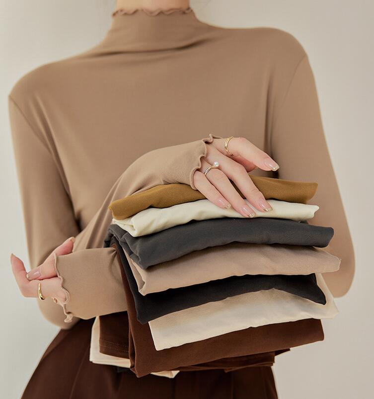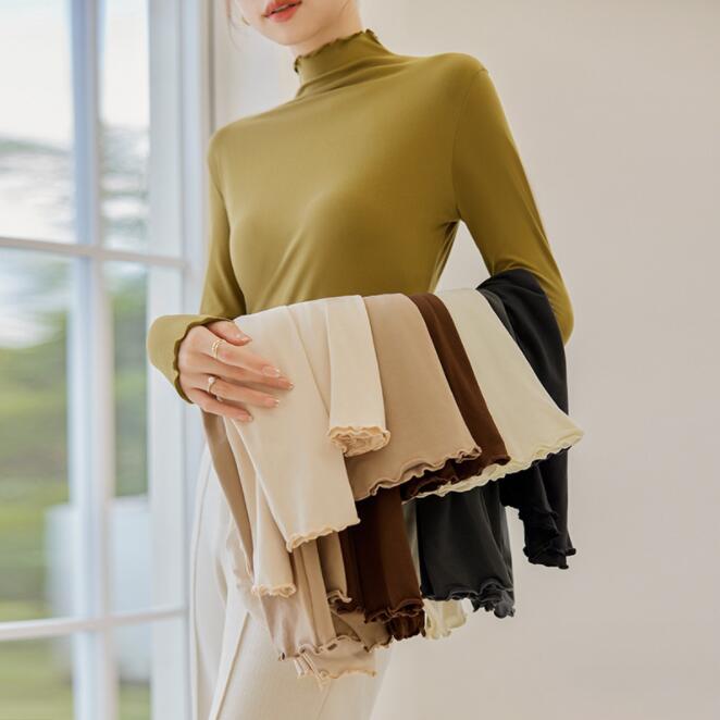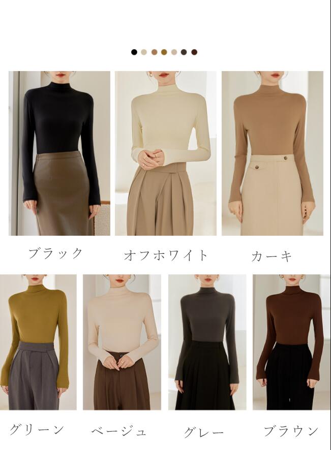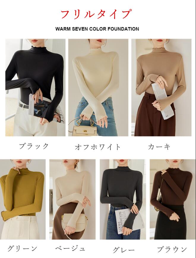 選べる2タイプ ハイネックTシャツ レ レディースファッション 通販 ブラックフリル オフホワイトフリル カーキフリル グリーンフリル ベージュフリル グレーフリル ブラウンフリル ブラック オフホワイト カーキ グリーン ベージュ グレー ブラウン M L XL
