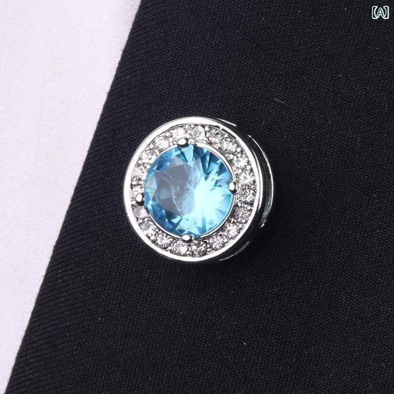 ラペルピン メンズ 結婚式 フォーマル ビジネス スーツ シャツ 小さい ラウンド ブローチ キラキラ 青 ストーン アクセサリー おしゃれ 上品