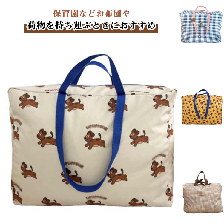 お布団バッグ キッズ 保育園 お昼寝布 キッズ バッグ ランドセル 通園バッグ 人気 犬柄ベージュ くま柄イエロー チャック柄ブルー チャック柄ベージュ