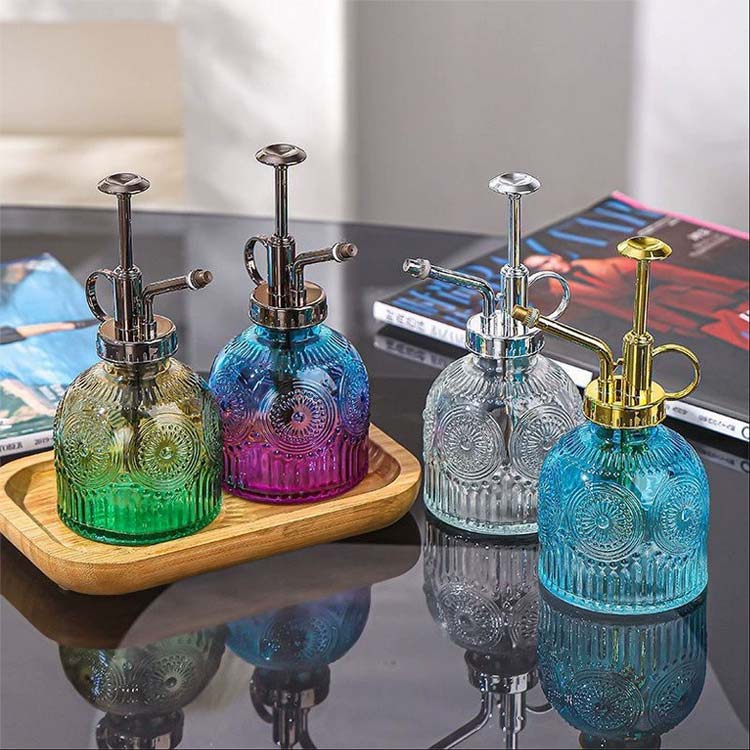 ガラス 230ml 霧吹き ミストスプ レッド ブルーパープル レッドグレー ブラウン ブルー ブラウングリーン 透明 グリーン ノズル/ゴールド色 ノズル/シルバー色 ノズル/銅色