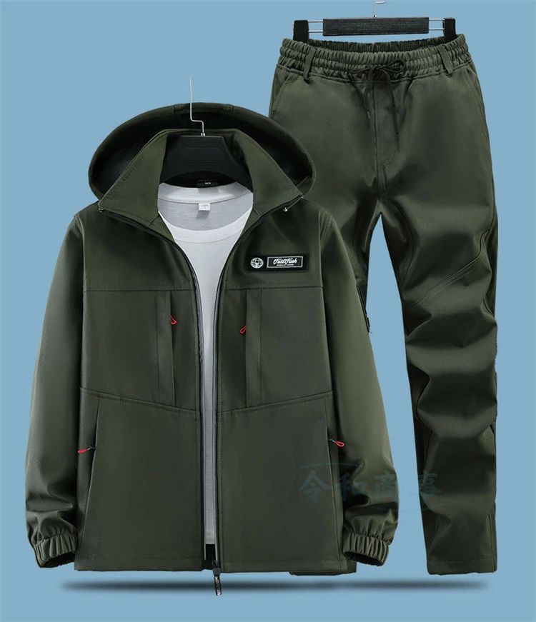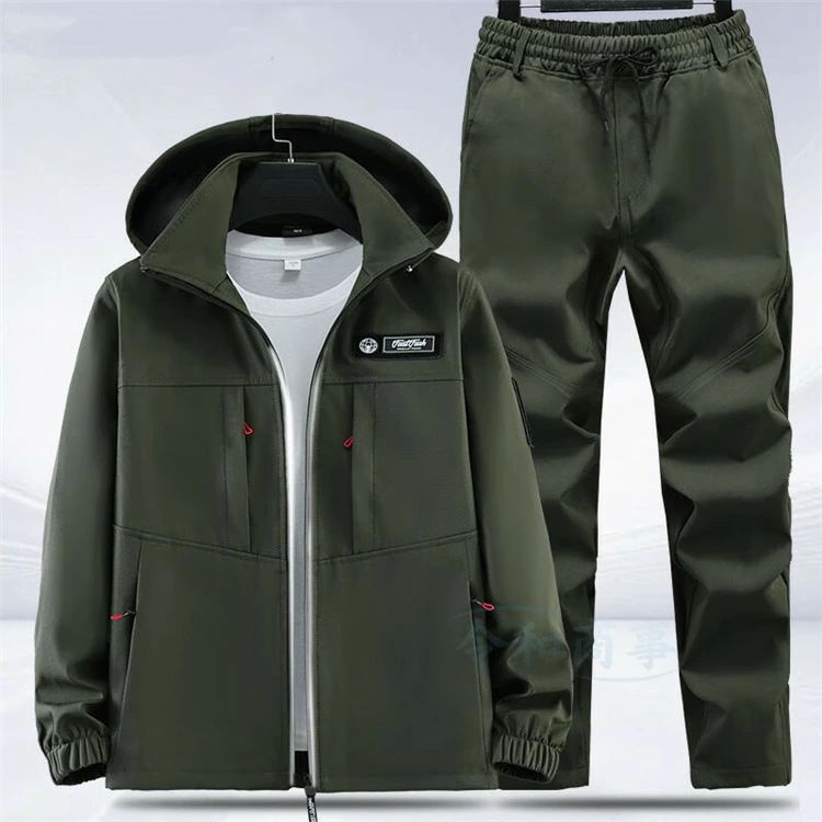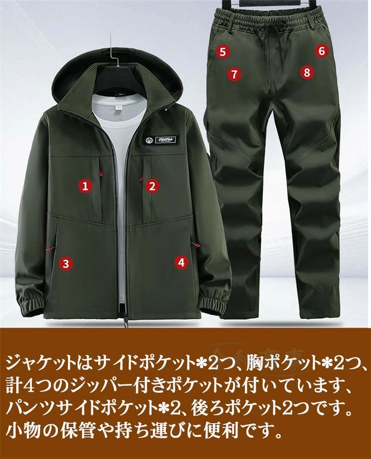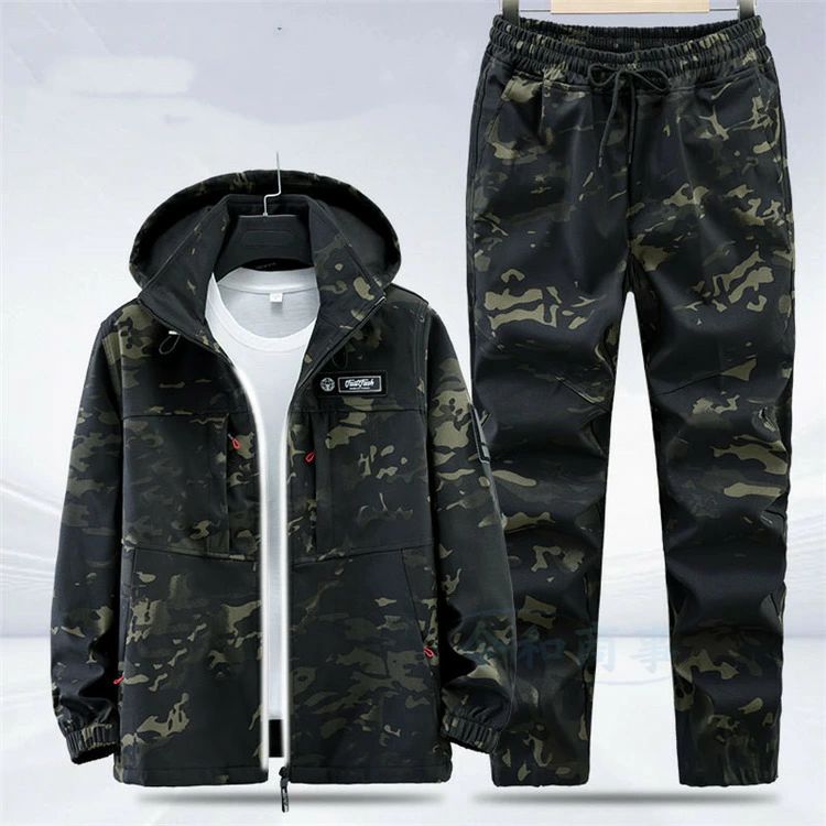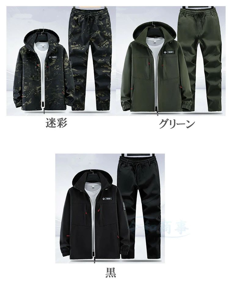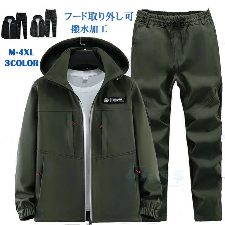 2点セッ 春 作業 カジュアル フード メンズファッション 特集 迷彩 グリーン 黒 165/M 170/L 175/XL 180/2XL 185/3XL 190/4XL