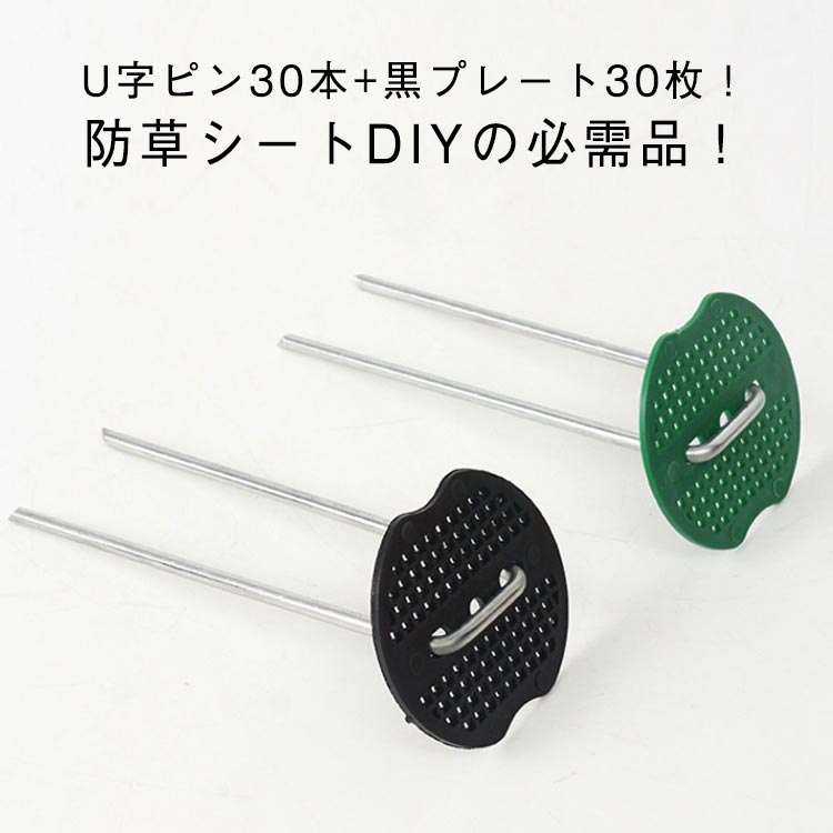 黒 防草シートピン 固定用 防草シート 2.2mm×長さ10cm 2.2mm×長さ15cm 2.2mm×長さ20cm 2.5mm×長さ10cm 2.5mm×長さ15cm 2.5mm×長さ20cm 3mm×長さ10cm 3mm×長さ15cm U字ピン30本+黒プレート30枚 U字ピン30本+グリーンプレート30枚