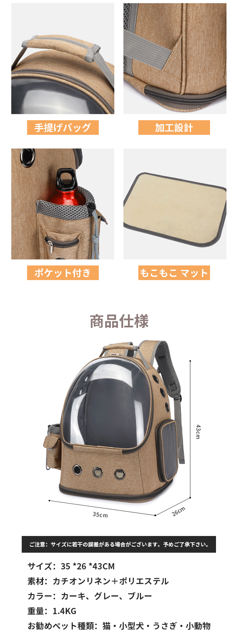 ペットキャリー 犬 小型犬 猫 うさぎ 猫用品 キャリーバッグ カート リュックキャリー 新作 カーキ グレー ブルー