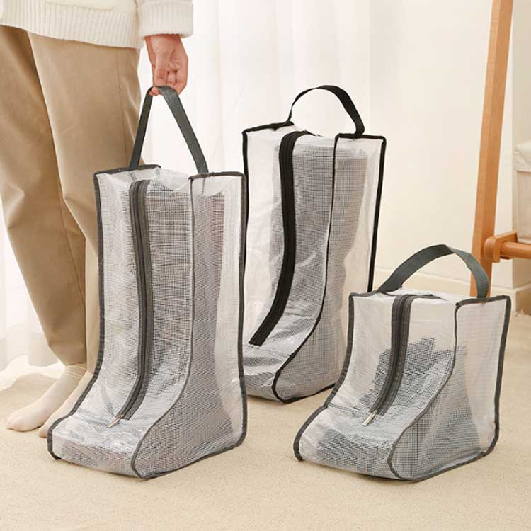 防水性と耐久性に優れたPVC/不織布で作られたこれらのブーツ収納バッグは、ブーツを乾いた状態に保ち、通気性を保ちます。
