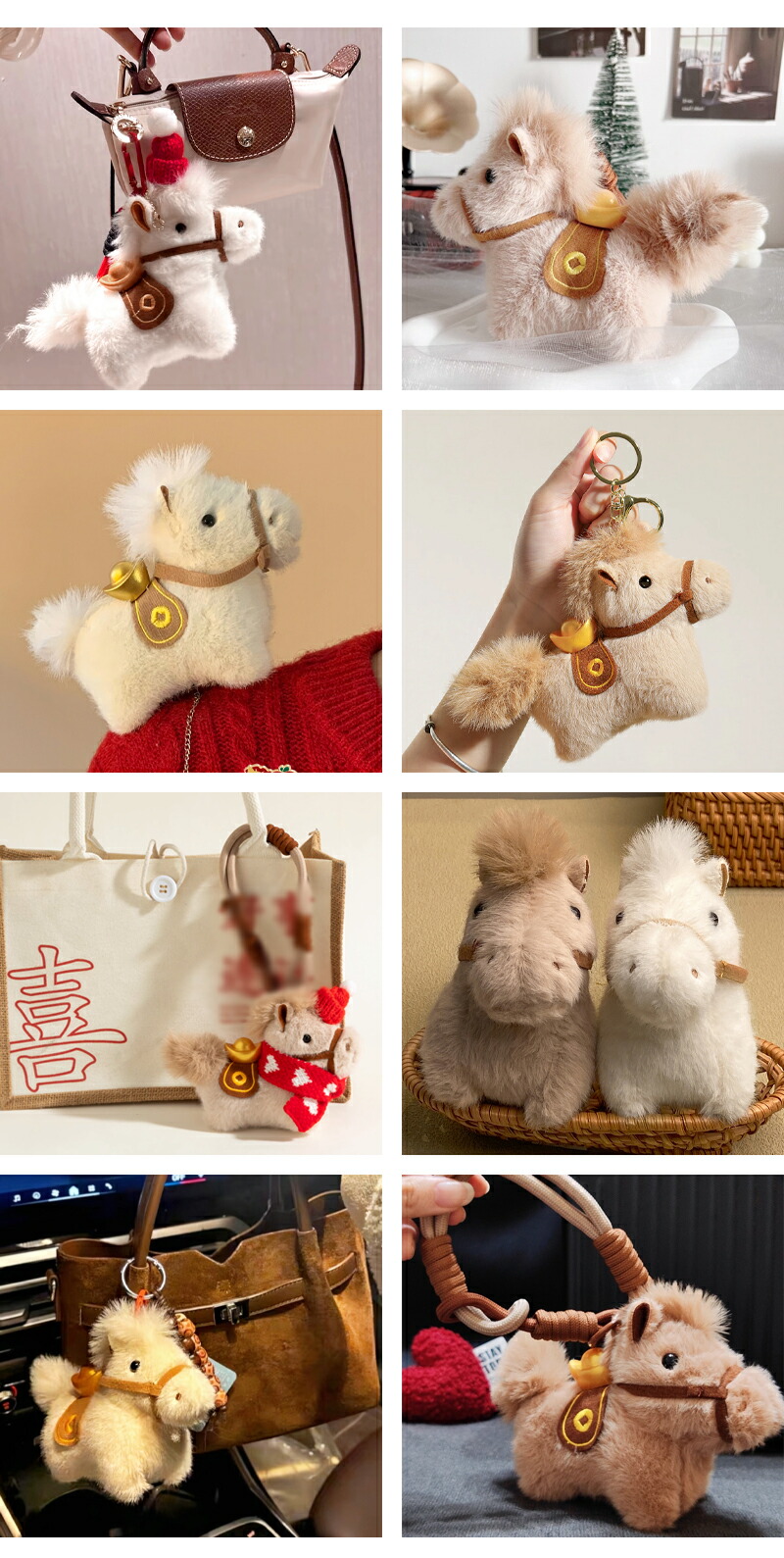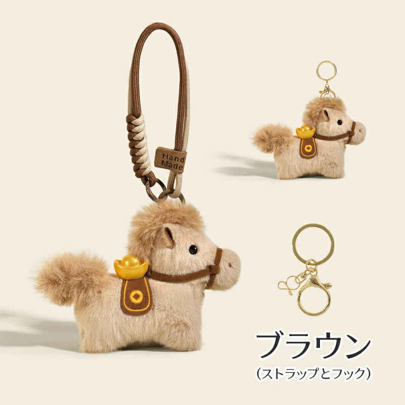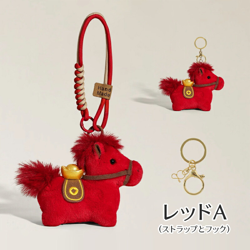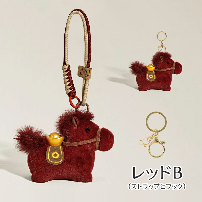 ぬいぐるみ チャーム 馬キーホルダー おもちゃ ゲーム 新作 ホワイト ブラウン レッドA レッドB ストラップとフック フック