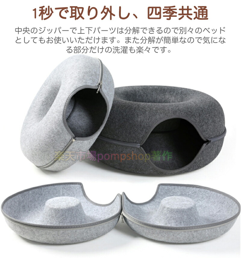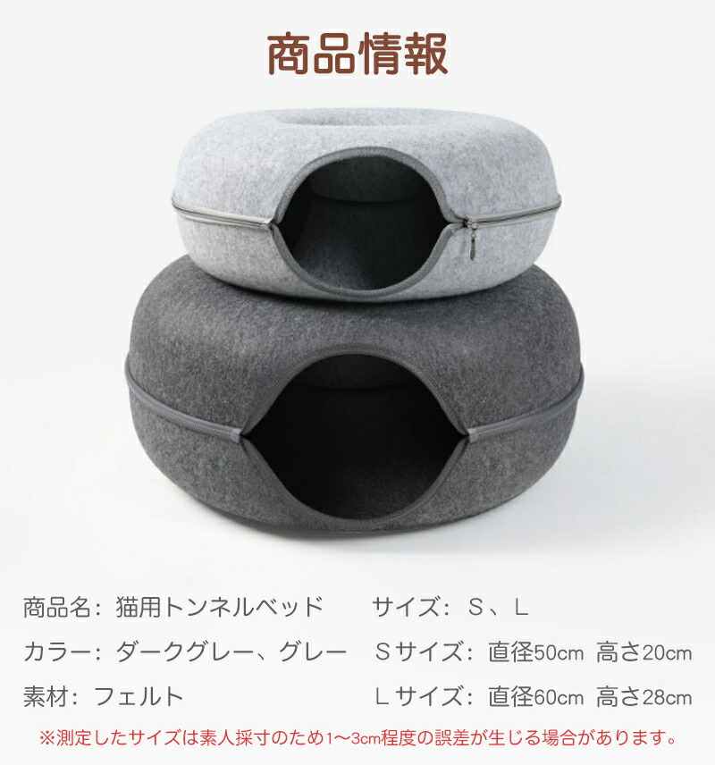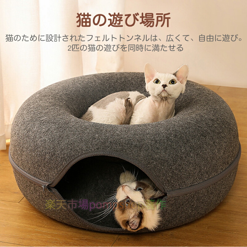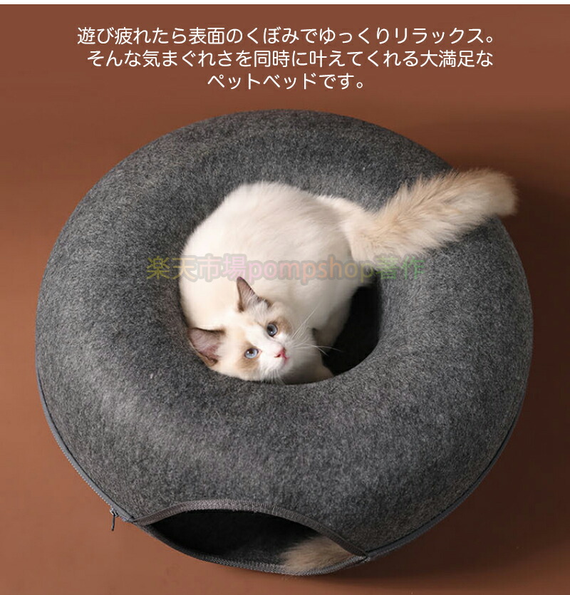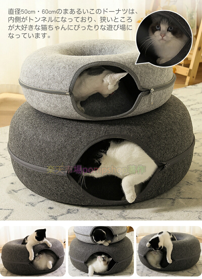 ドーナツ型 キャットトンネル ドーナツ 猫用品 ベッド マット 寝具 ベッド 通販 グレー ダークグレー S L