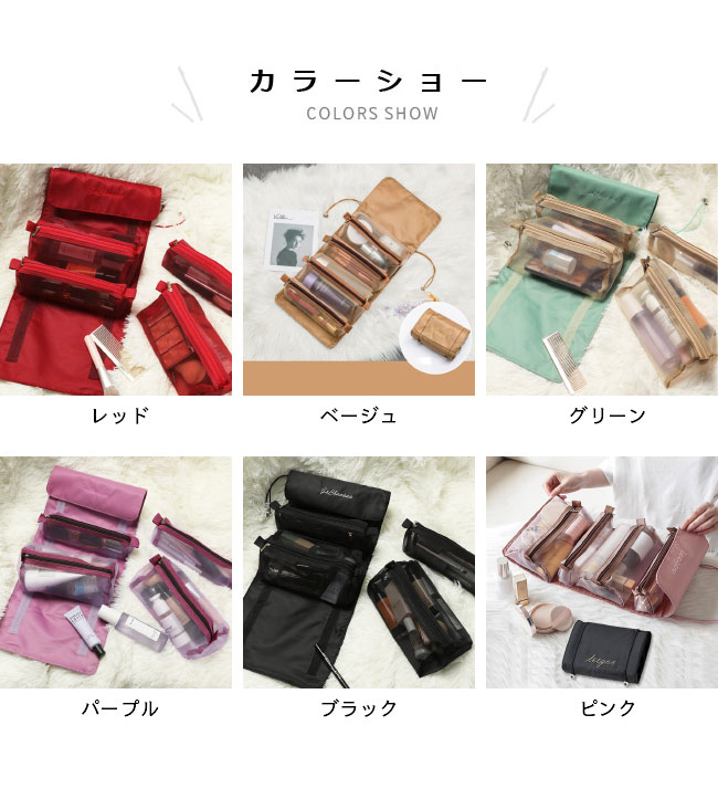 トラベルポーチ 洗面バッグ 化粧ポーチ 日用品雑貨 文房具 手芸 人気 レッド ベージュ グリーン パープル ブラック ピンク