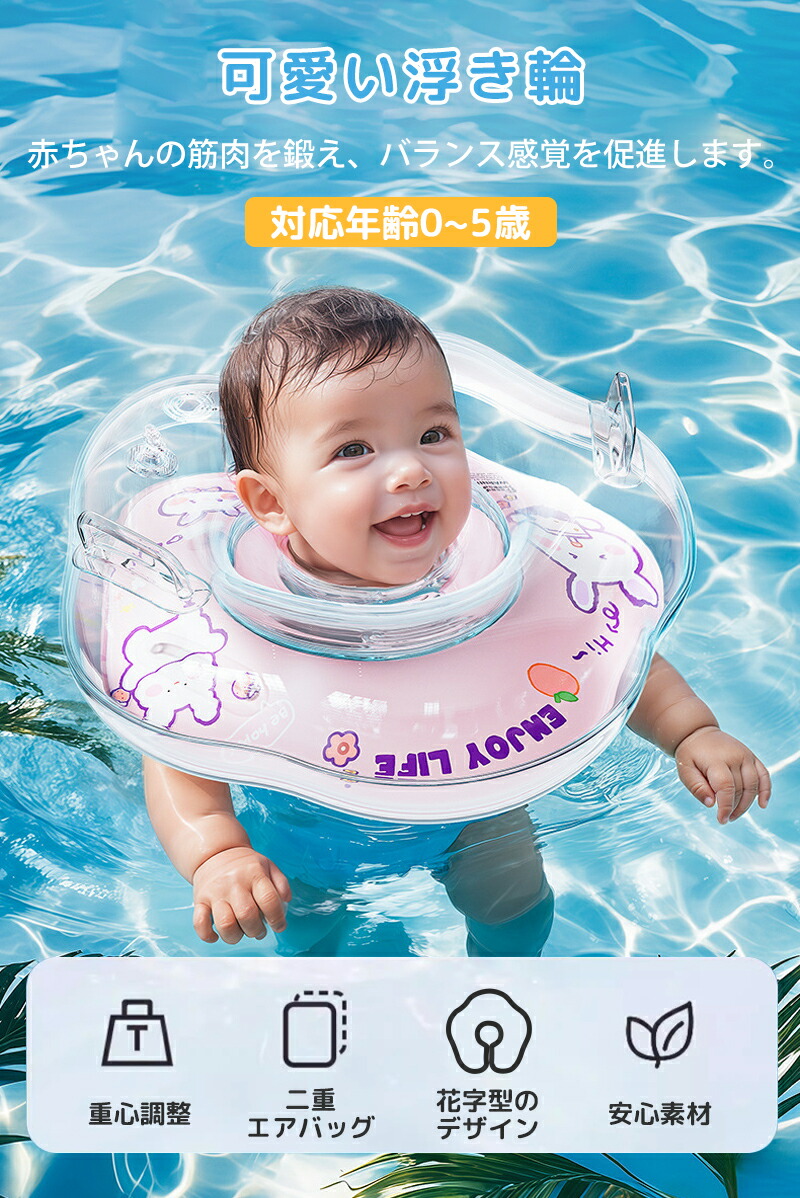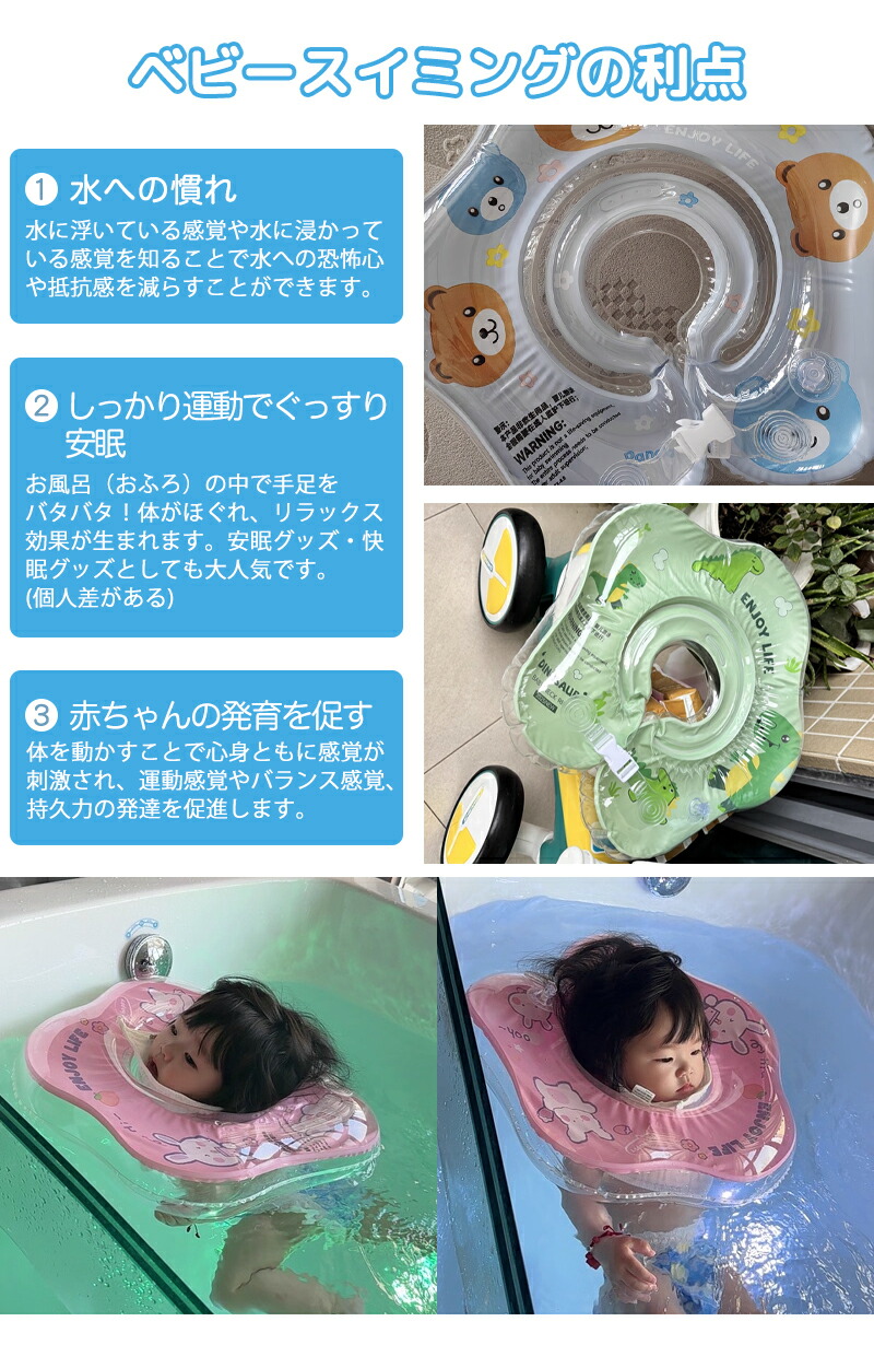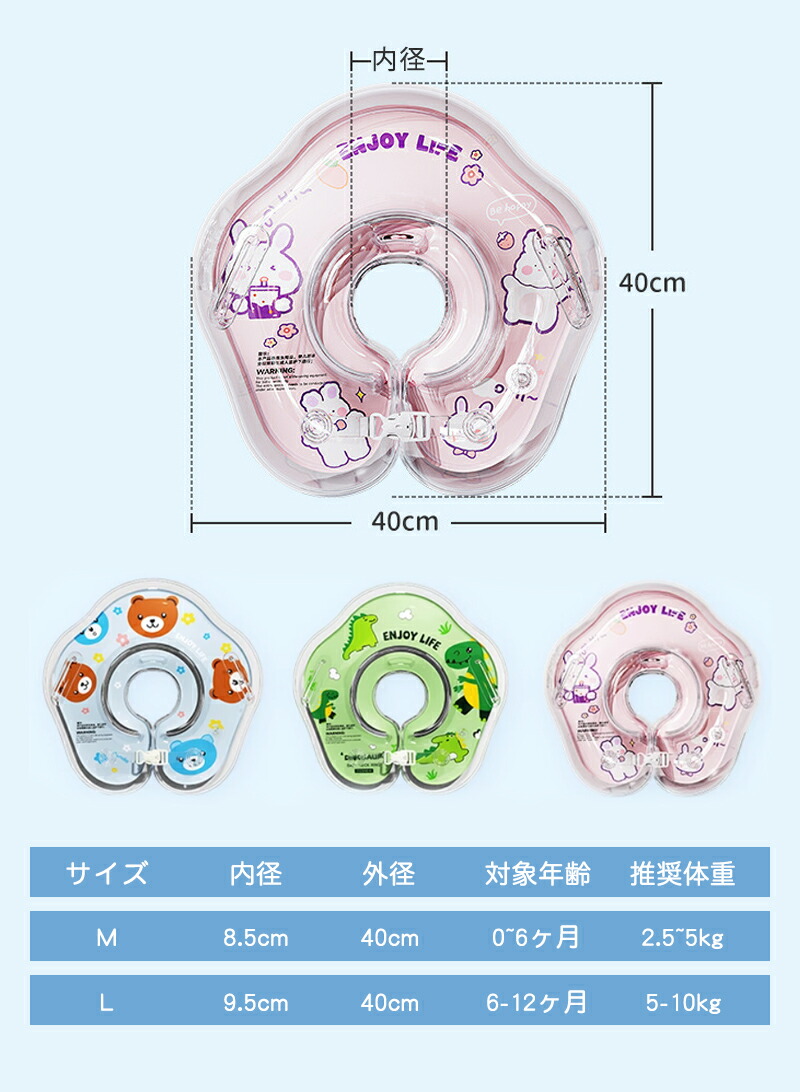 浮き輪 赤ちゃん うきわ首リング ベビ M L クマ ブルー 恐竜 グリーン うさぎ ピンク
