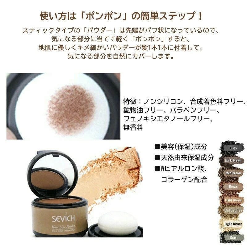 薄毛 男女兼用 パフを使って簡単ケア グレー ライトカフェ ブラウン ライトブラウン ブラック ダークブラウン MEDブラウン ライトブロンド