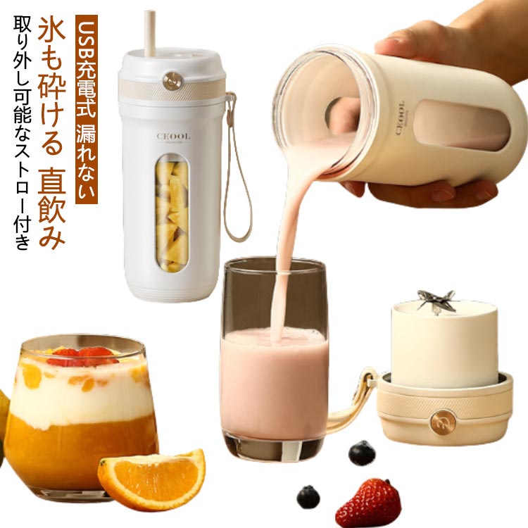 取り外し可能なストロー付き ジューサー ミキサー ポータブル 水筒 直飲み コードレスミキサー ポータブルミキサー 氷も砕ける