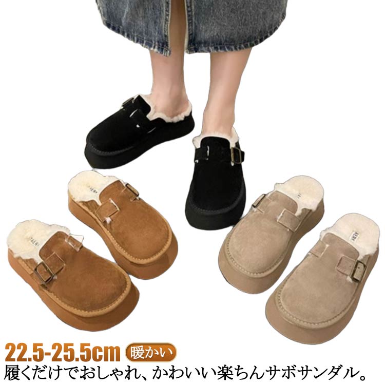 かかとなし スリッパ ムートン 裏ボア 厚底サンダル 暖かい おしゃれ サンダル サボ 秋冬 裏起毛 冬 レディース 厚底