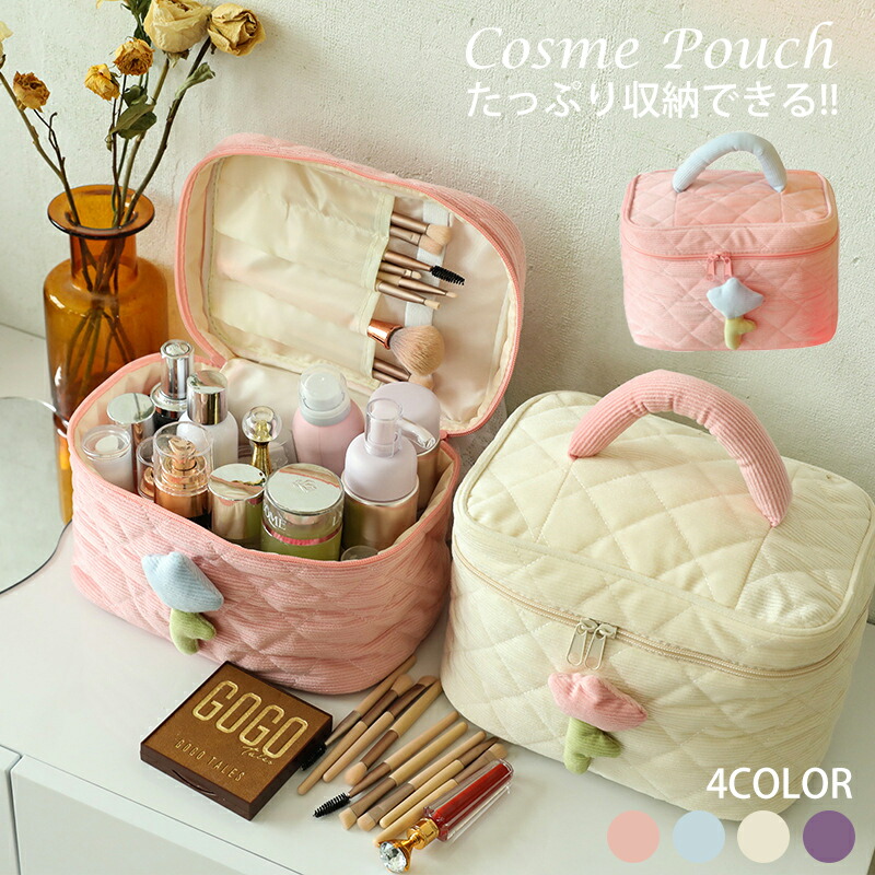 大容量化粧ポーチ 縦型 トラベルポーチ タイプA-ブルー タイプA-ピンク タイプA-ベージュ タイプA-パープル タイプB-ブルー タイプB-ピンク タイプB-ベージュ タイプB-パープル