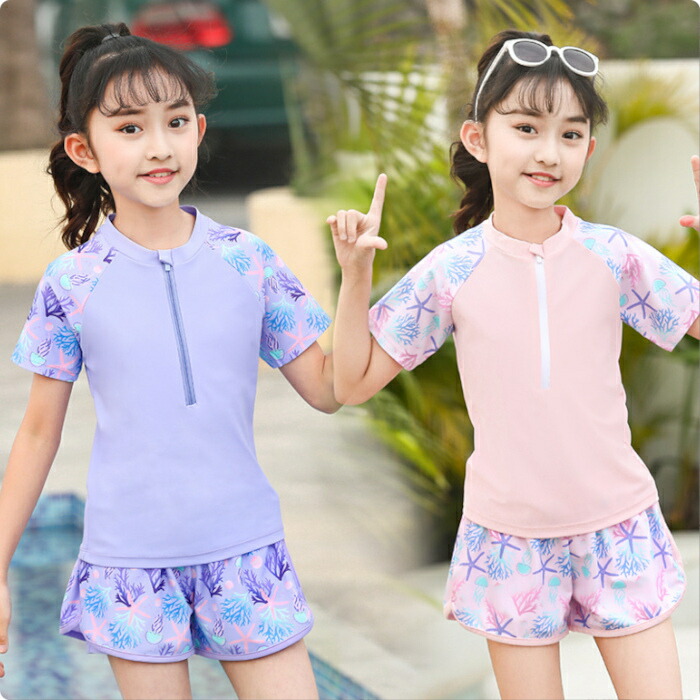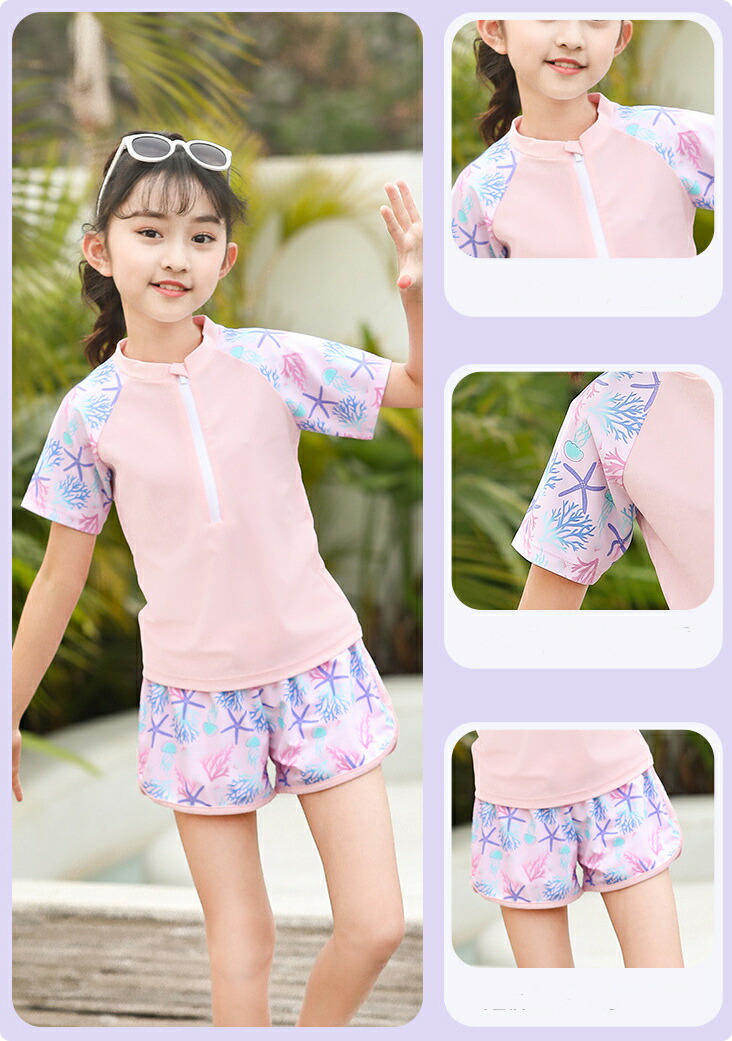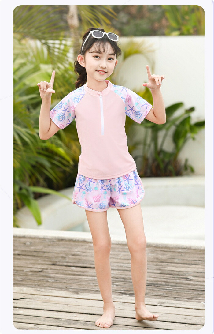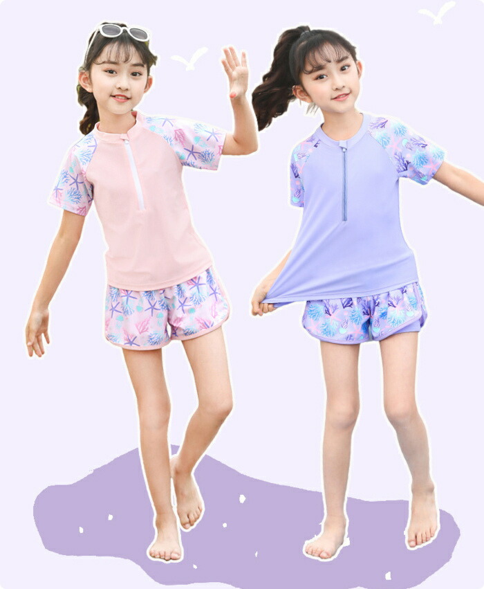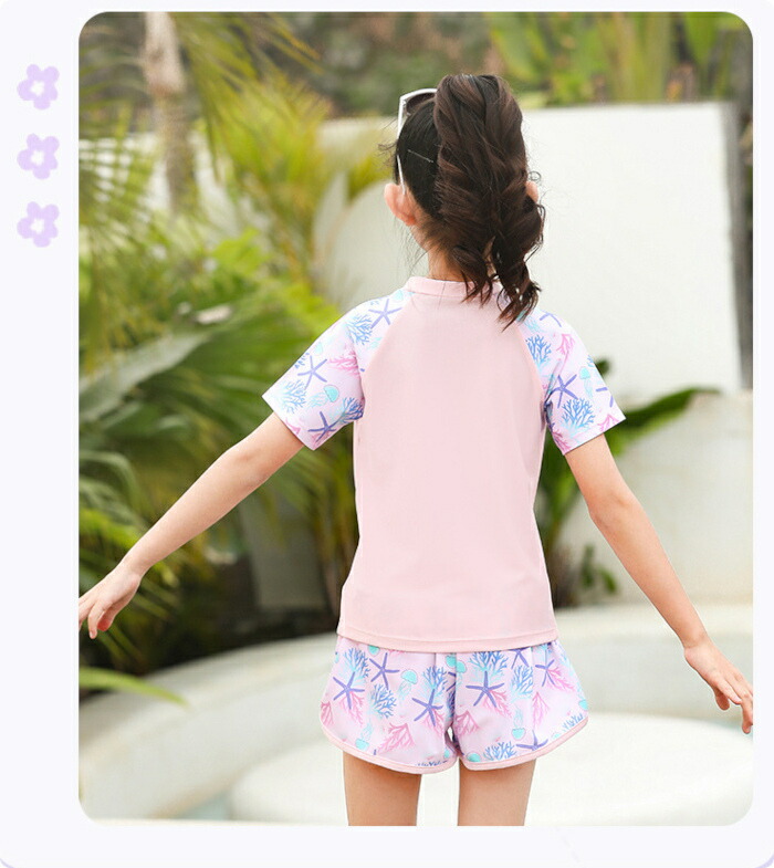 子供水着 女の子 セパレート ピンク キッズ ベビー マタニティ 続々登場 パープル ピンク XL(105~120) 2XL(120~130) 3XL(130~140) 4XL(140~150) 5XL(150-160パット付き)