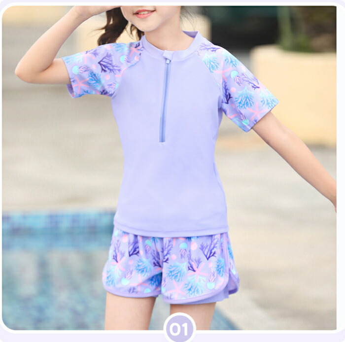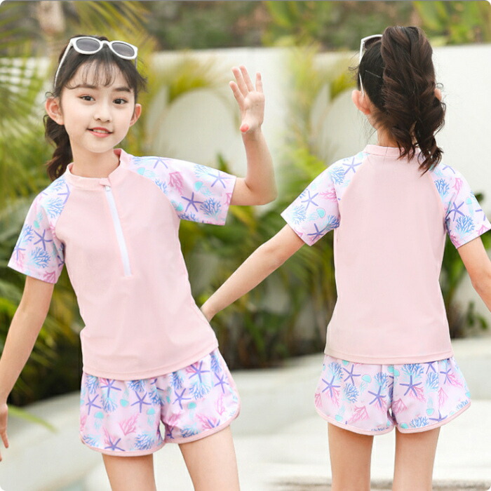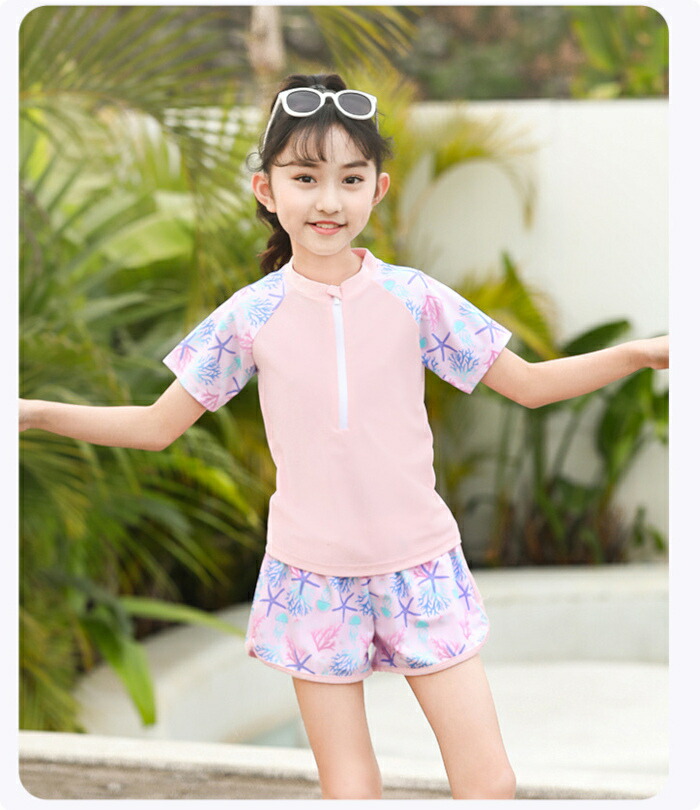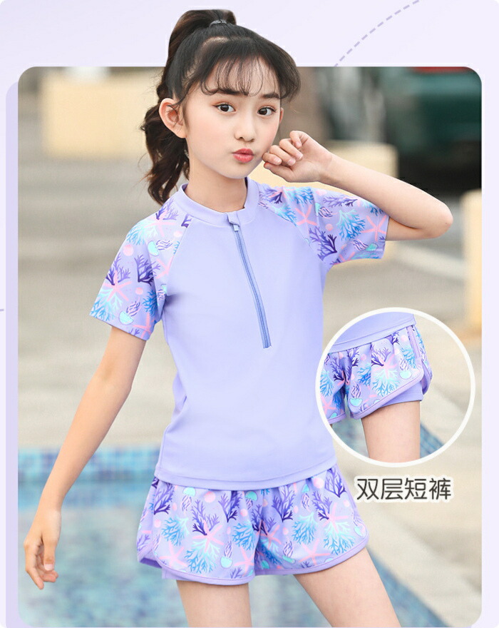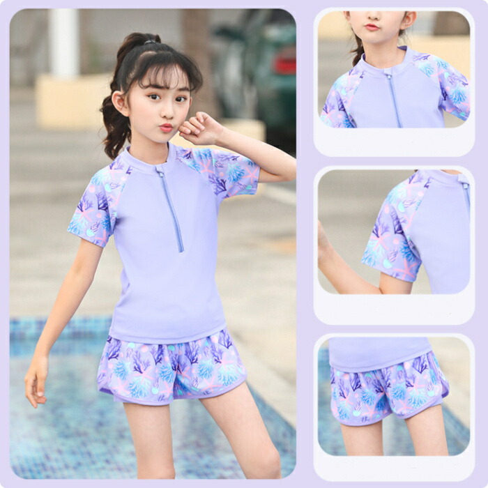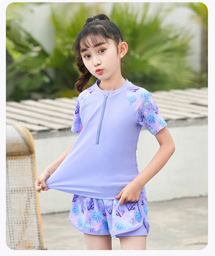 子供水着 女の子 セパレート ピンク キッズ ベビー マタニティ 続々登場 パープル ピンク XL(105~120) 2XL(120~130) 3XL(130~140) 4XL(140~150) 5XL(150-160パット付き)