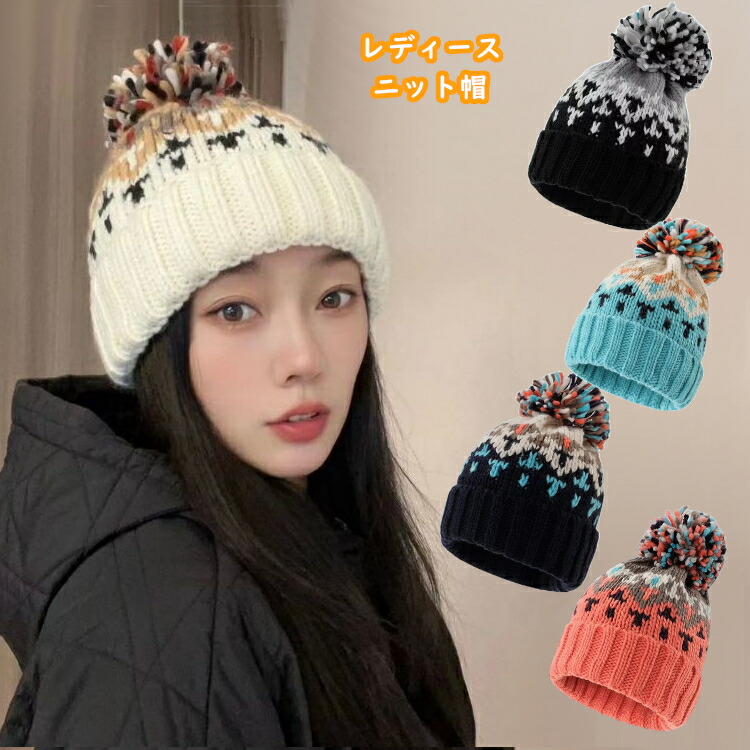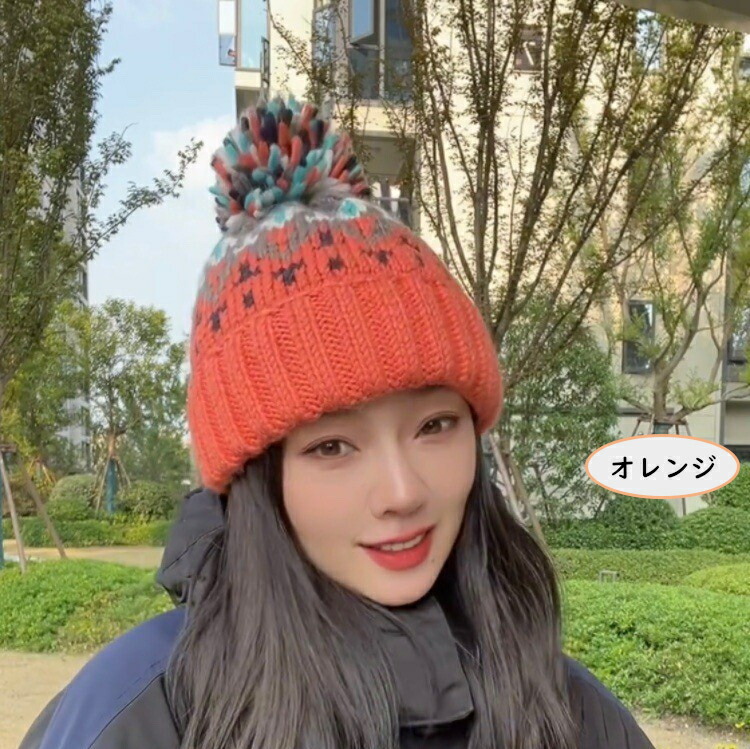 レディース ニット帽 ポンポン付き か 帽子 レディース帽子 ニット帽 特集 ネイビー オレンジ アイボリー ブラック ブルー