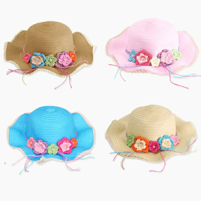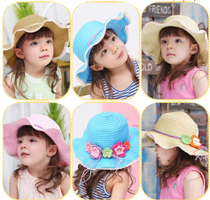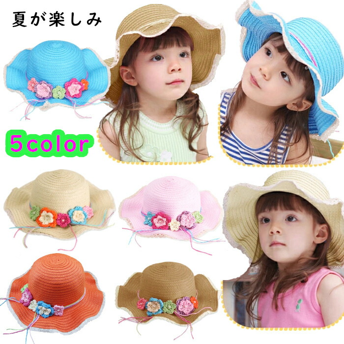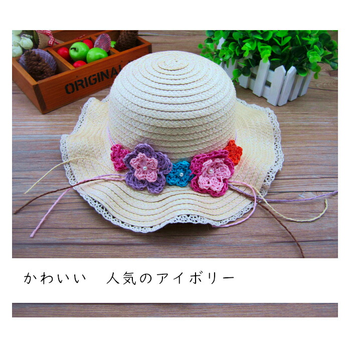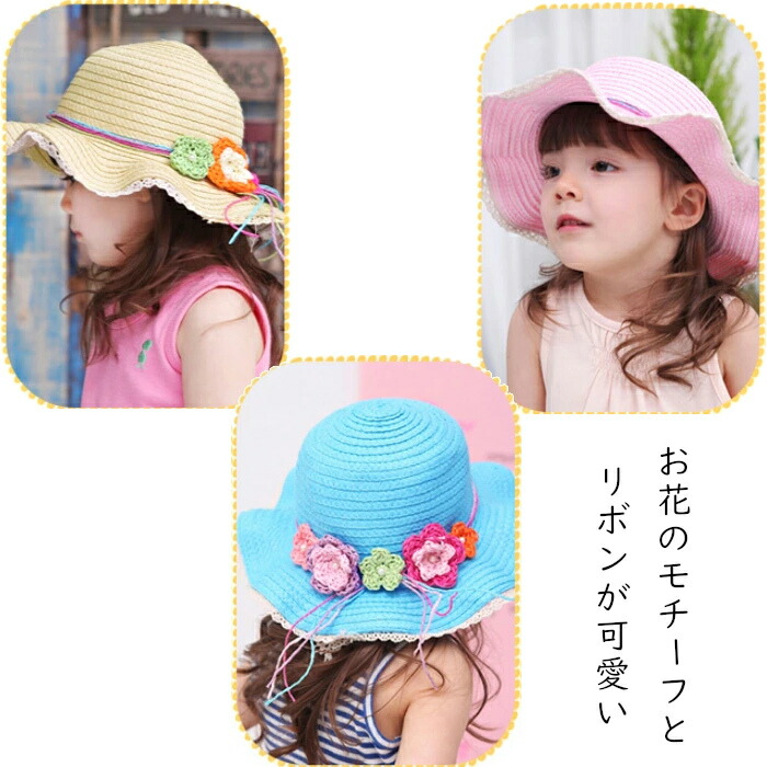 キッズ 帽子 日よけ 女の子 麦わら帽 キッズ ベビー マタニティ 続々入荷中 ライトブラウン アイボリー ピンク ブルー オレンジ