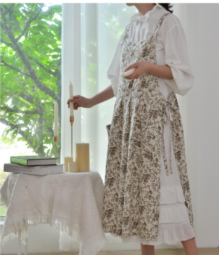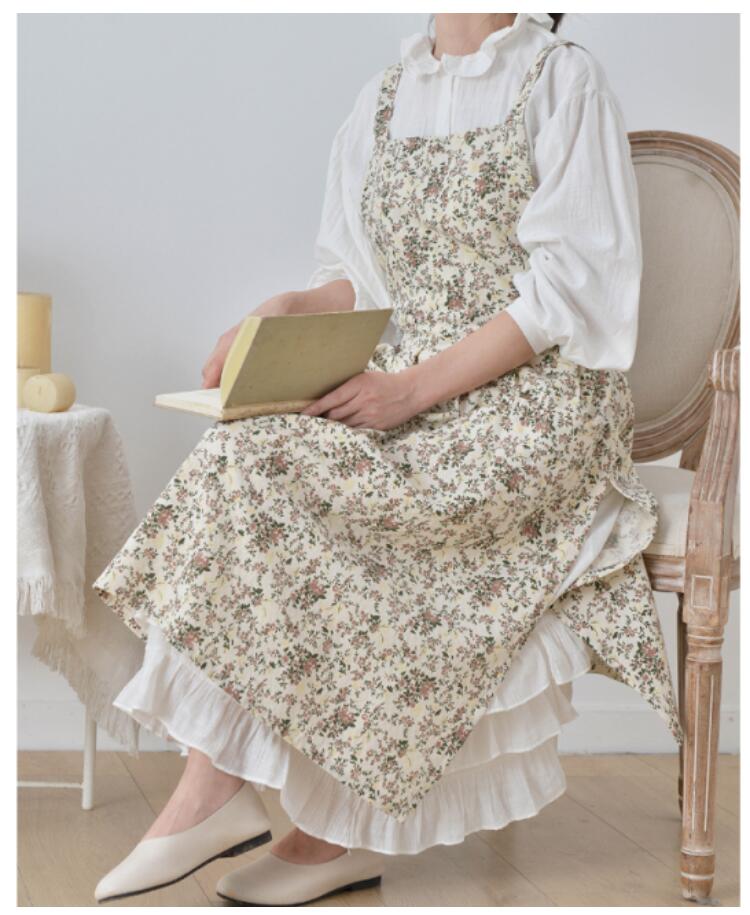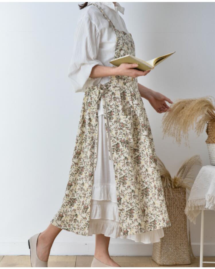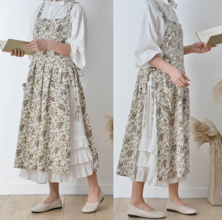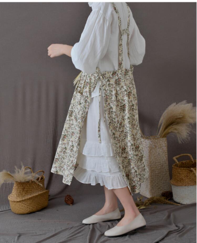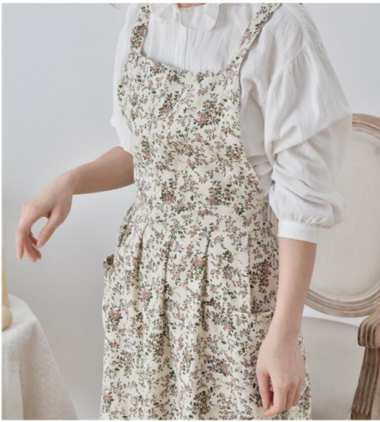 コット エプロン花柄エプロン 綿100 配膳用品 キッチンファブリック エプロン 三角巾 エプロン 新登場! 花柄ホワイト 花柄コーヒー