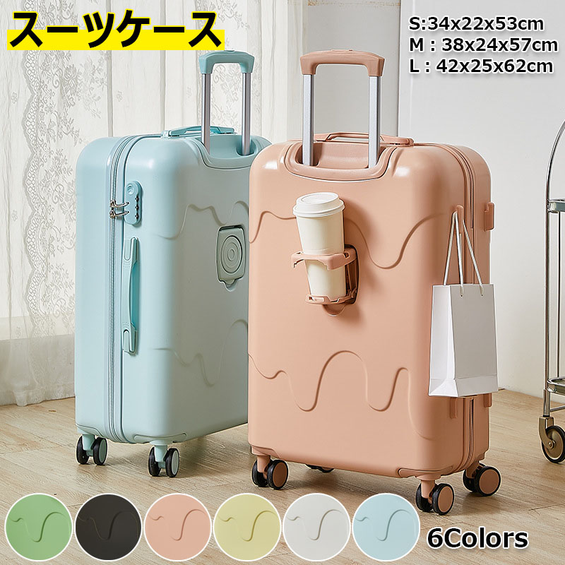スーツケース カップホルダー付き 機内持込キャリーケース 超軽量 静音 キャリーバッグ 可愛い トランクケース かわいい 持ち運べる 携帯バッグ キャスター付き 旅行用スーツケース ロッ 360°静音