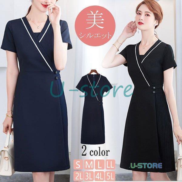 ユニフォーム エステ サロン ワンピース 通勤 切り替えプリーツ 作業服 レディース 事務服 制服 半袖 仕事着 ネイル 介護 歯科 衛生士 美容