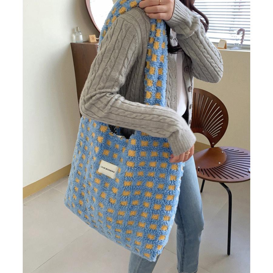 ボアトートバッグ チェック柄 大容量クラッチバッグ
