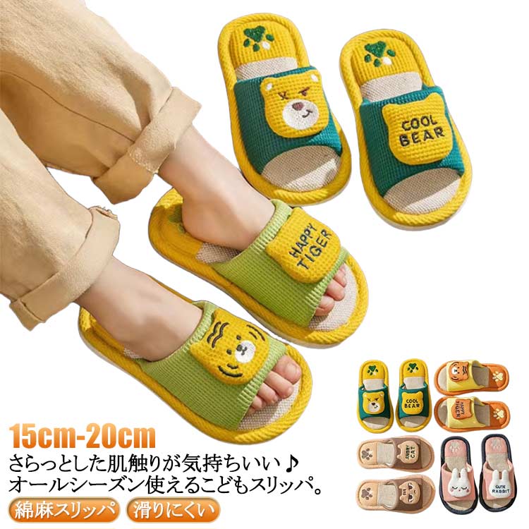 子ども 夏スリッパ スリッパ 綿麻スリッパ こども 18cm 子供 15cm お揃い 洗える 室内 男の子 かわいい おしゃれ 疲れない アニマル柄 16cm 17cm 室内履き