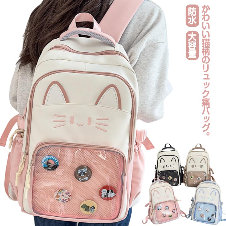 猫 痛リュック リュック 防水 かわいい 大容量 痛バッグ 缶バッジ 推し活 ライブ 通学 かばん 中学生 イベント