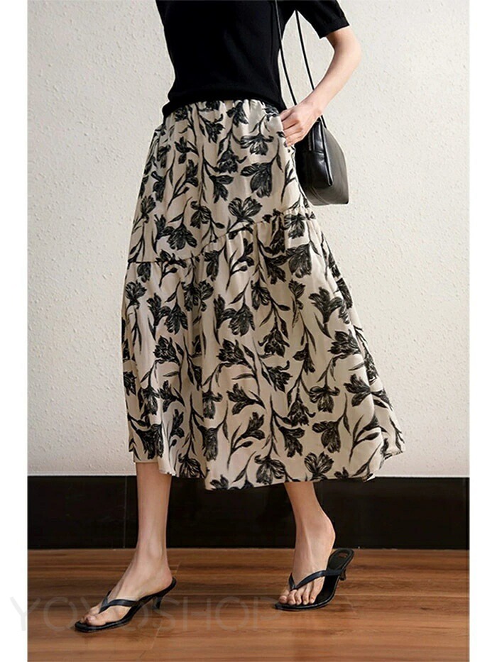 スカート ロング レディース きれいめ 花柄 ロング スカート ミモレ丈 ボトムス ロング フレアスカート ライン ポケット 薄手 通勤 仕事 オフィス ゆったり 大人可愛い