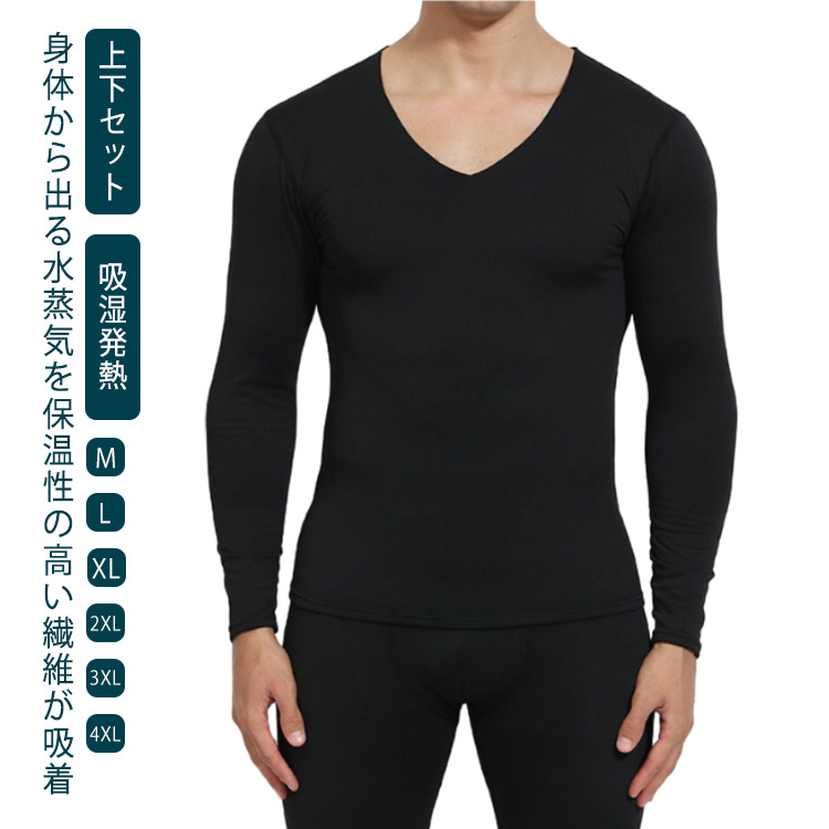 保温 吸湿発熱 あったか シームレス 上下セット Vネック インナー 長袖 メンズ 秋冬 防寒 極暖 パンツ 防寒肌着 ストレッチ ヒートテック 無縫製 防寒対策 インナーシャツ T 冬用