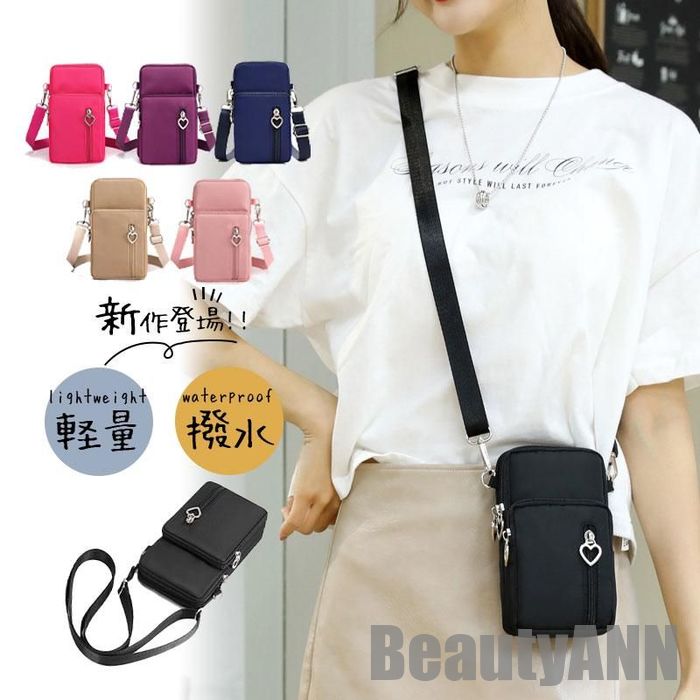 新生活 スマホポシェット 縦型 軽量 スマホポーチ レディース ナイロン ショルダー 斜めがけ 肩掛け 大容量 財布 通勤 小物入れ プレゼント ギフト 通学