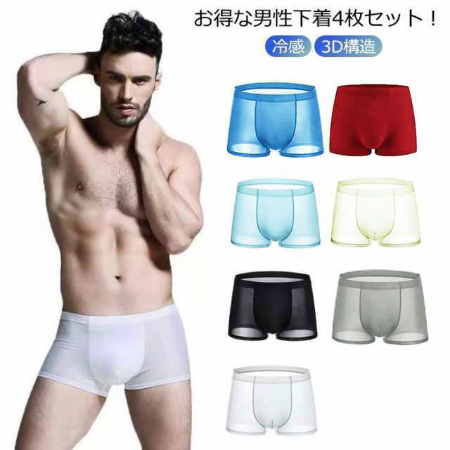 無地 夏 メンズ まとめ買う ストレスフリーパンツ パンツ インナー ボクサーパンツ 通気性 下着 冷感 クールパンツ 立体構造 3D構造 男性 4枚セット アンダーウェア 大きいサイズ アイ 伸縮性