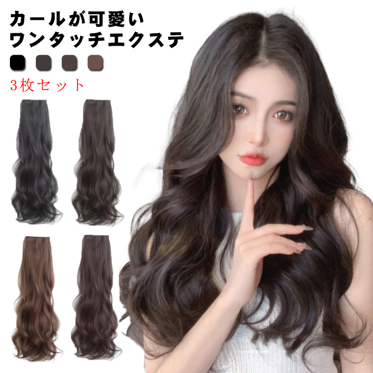 エクステ 3枚セット ナチュラル ワンタッチ つけ髪 巻き髪 つけ毛 カール 部分ウィッグ ロング ヘアピース コスプレ 変装 ワンポイント 仮装 変身 ハロウィン おしゃれ