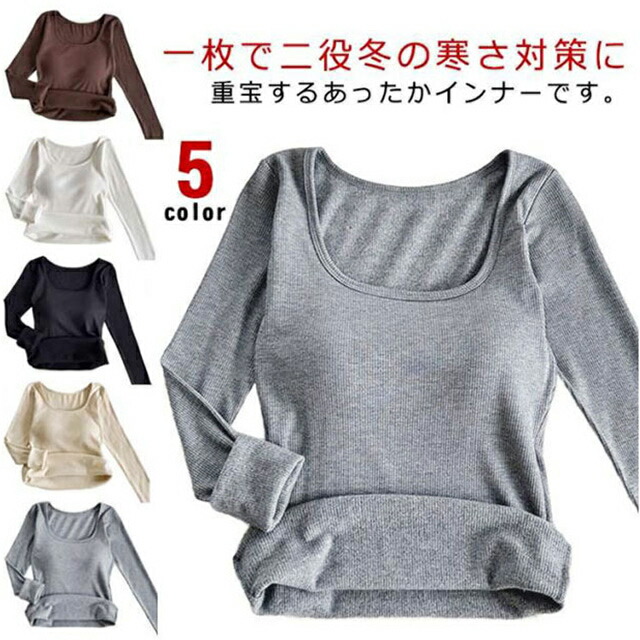 あったかインナー カップ付き リブ トップス レディース 長袖 ブラトップ 暖かい スクエアネック インナーシャツ 秋冬 防寒 肌着 下着 婦人 女性用 保温 あったか ストレッチ性 着 ヒートテック