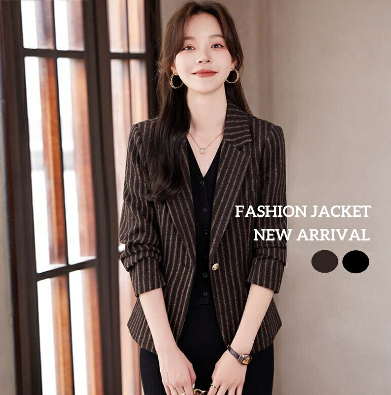 レディースジャケット エレガント 高級感 単品 レディーススーツ 上着 上品 きれいめ おしゃれ 縞柄 ストライプ 2色 一つボタン 着痩せ 秋冬 新着 ビジネス カジュアル パーティー 通勤お出かけ