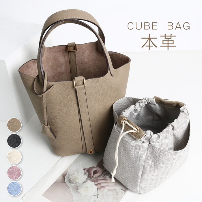 キューブバッグ 本革 キューブ型バッグ 牛革 ハンドバッグ ミニ 鞄 高級 ソフト 手提げバック 小さめ バケツ型バッグ 可愛い レザー自立 バッグインバッグ プレゼンント レディース