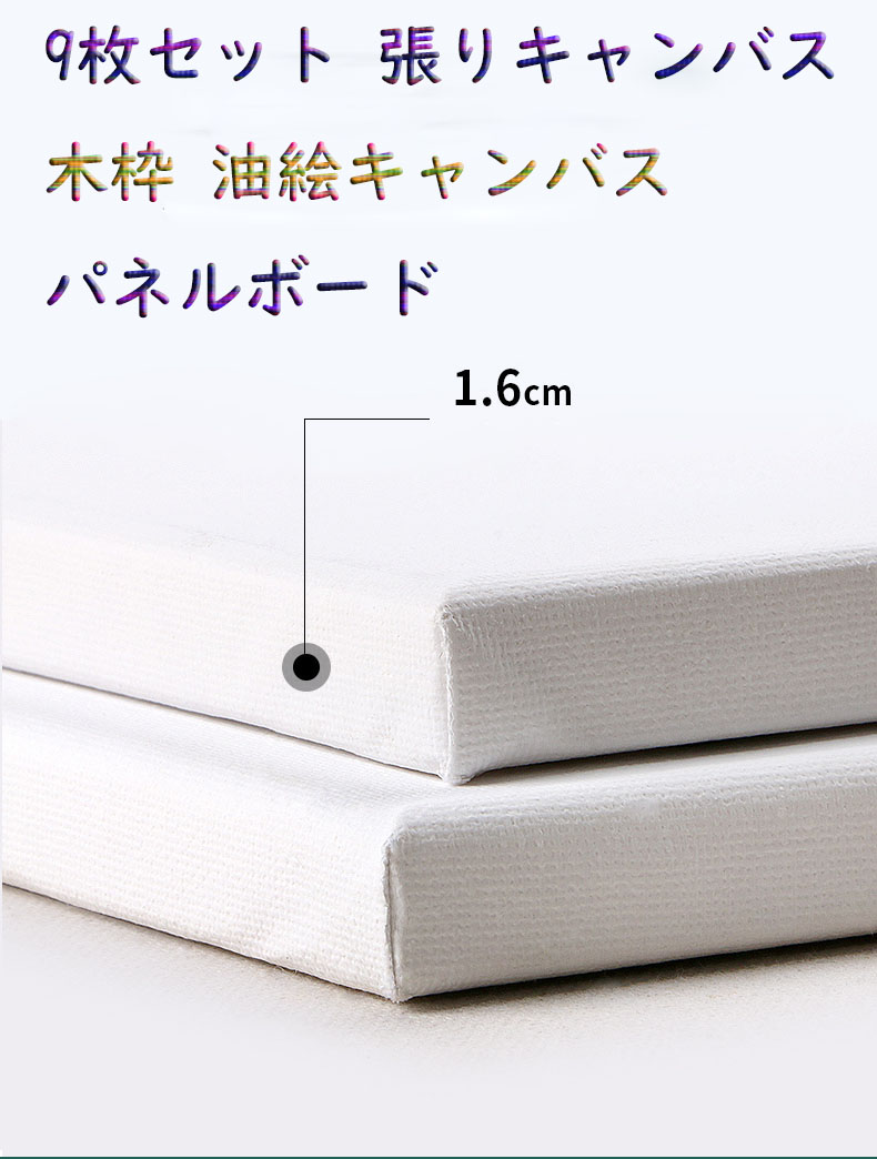 9枚セット 張りキャンバス 木枠 油絵キャンバス パネルボード 水彩画 油絵画 アクリル兼用 綿化繊 画材セット 壁に掛ける 部屋飾り アーティスト画布 厚手オイル漏れ防止