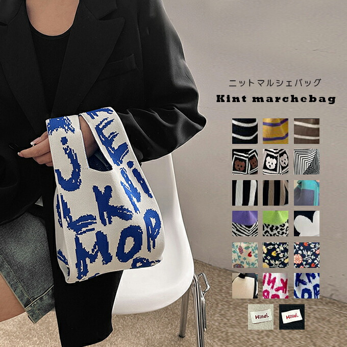 ニットバッグ マルシェバッグ ニット トートバッグ 縦型 かぎ針 ハンドバッグ レディース ミニバッグ ストライプ 韓国