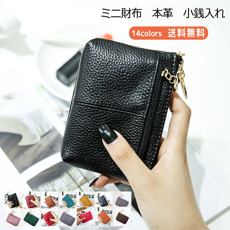 ミニ財布 レデイース カードケース 本革 ジッパー式 キーリング付き 小さい 軽量 小銭入れ カード入れ シンプル ギフト おしゃれ コンパクト
