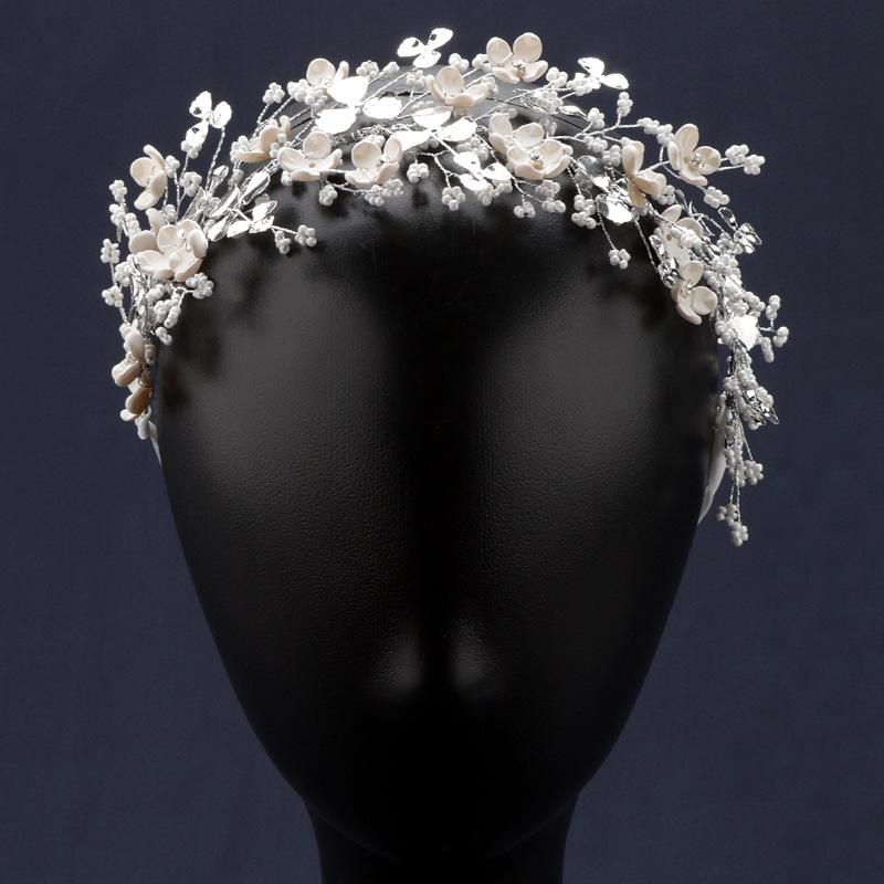 ヘアアクセサリー レディース 欧米風 手編み ホワイト カチューシャ ヘッドドレス 花嫁 ウェディング 結婚式 披露宴 髪飾り ブライダル