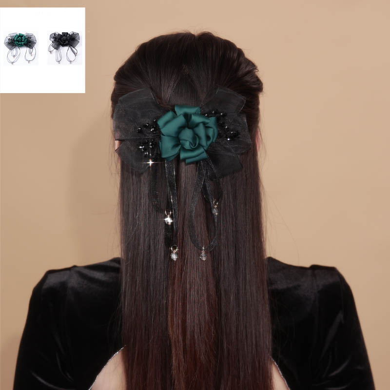 へアクリップ 薔薇 バラ 花 ブラック グリーン 高品質 髪飾り 髪留め バンスクリップ ヘアアクセサリー レディース 女の子 可愛い おしゃれ 大人