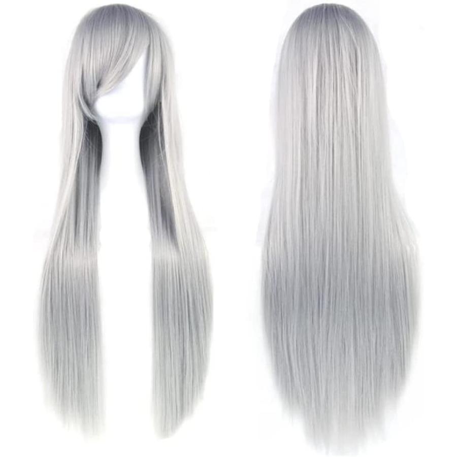 ウィッグ ネット付 フリーサイズ 80cm ストレート コスチューム用小物 シルバー ロング