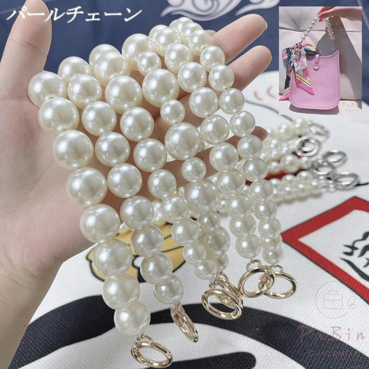 パールチェーン バッグハンドル パールハンドル パール チェーン ショルダーストラップ パールショルダー パールストラップ スマホショルダー スマホストラップ ゴールド シルバー 金具 バッグ小物