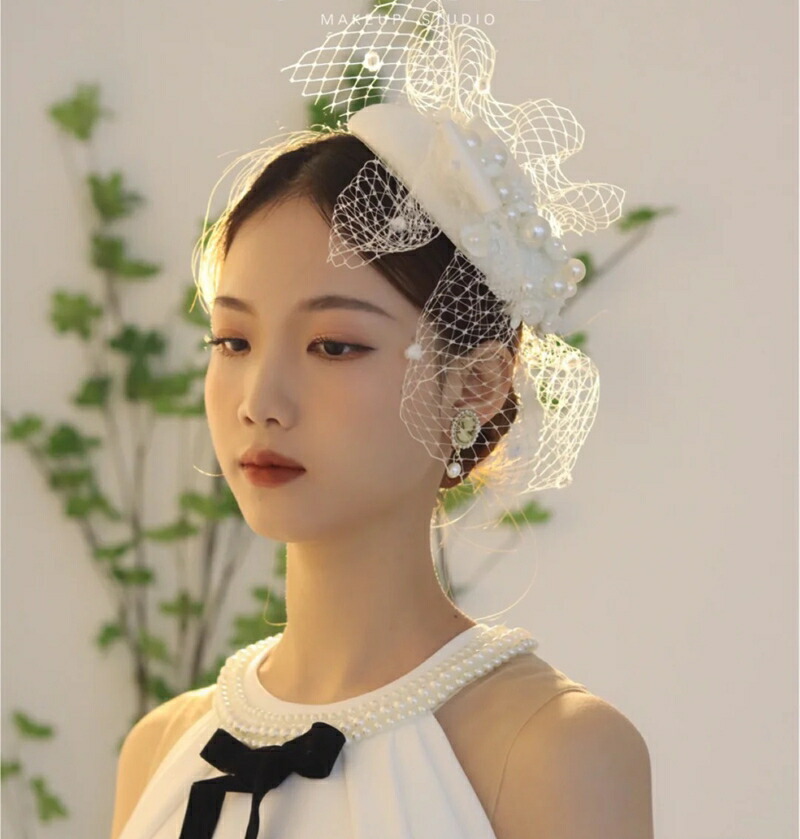 ウェディングハット トーク帽 チュール トークハット パール パーティー ウェディングヘッドドレス ウエディングハット カクテル帽 ウェディング帽子 カクテルハット 着物 花火 イベント 結婚式 浴衣
