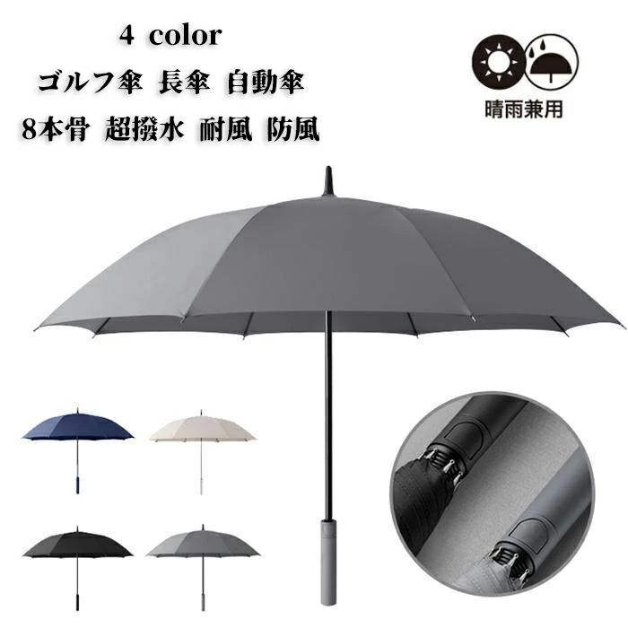 ゴルフ傘 長傘 自動傘 ゴルフパラソル 日傘 晴雨兼用 8本骨 自動開 自動開傘 ワンプッシュ 超撥水 耐風 防風 スポーツ用 紳士傘 梅雨対策 台風対応 丈夫 スポーツ観戦 完全遮光 ワンタッチ
