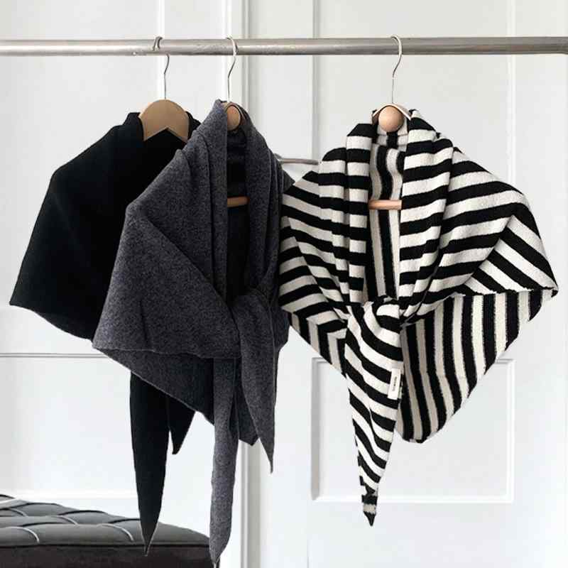 ストール レディース ウール100% 三角ショール マフラー 厚手 柔らか 肌触り 保温 防寒 ストライプ柄 通勤 オフィス 上品 秋冬 防寒対策 エレガント