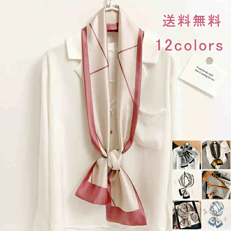 レディース スカーフ 細スカーフ ミニスカーフ プチスカーフ ヘアスカーフ ヘアアクセサリー ヘア飾り ネッカチーフ バッグスカーフ 首元 リボン ストール 細長 ロング アクセント リボンスカーフ
